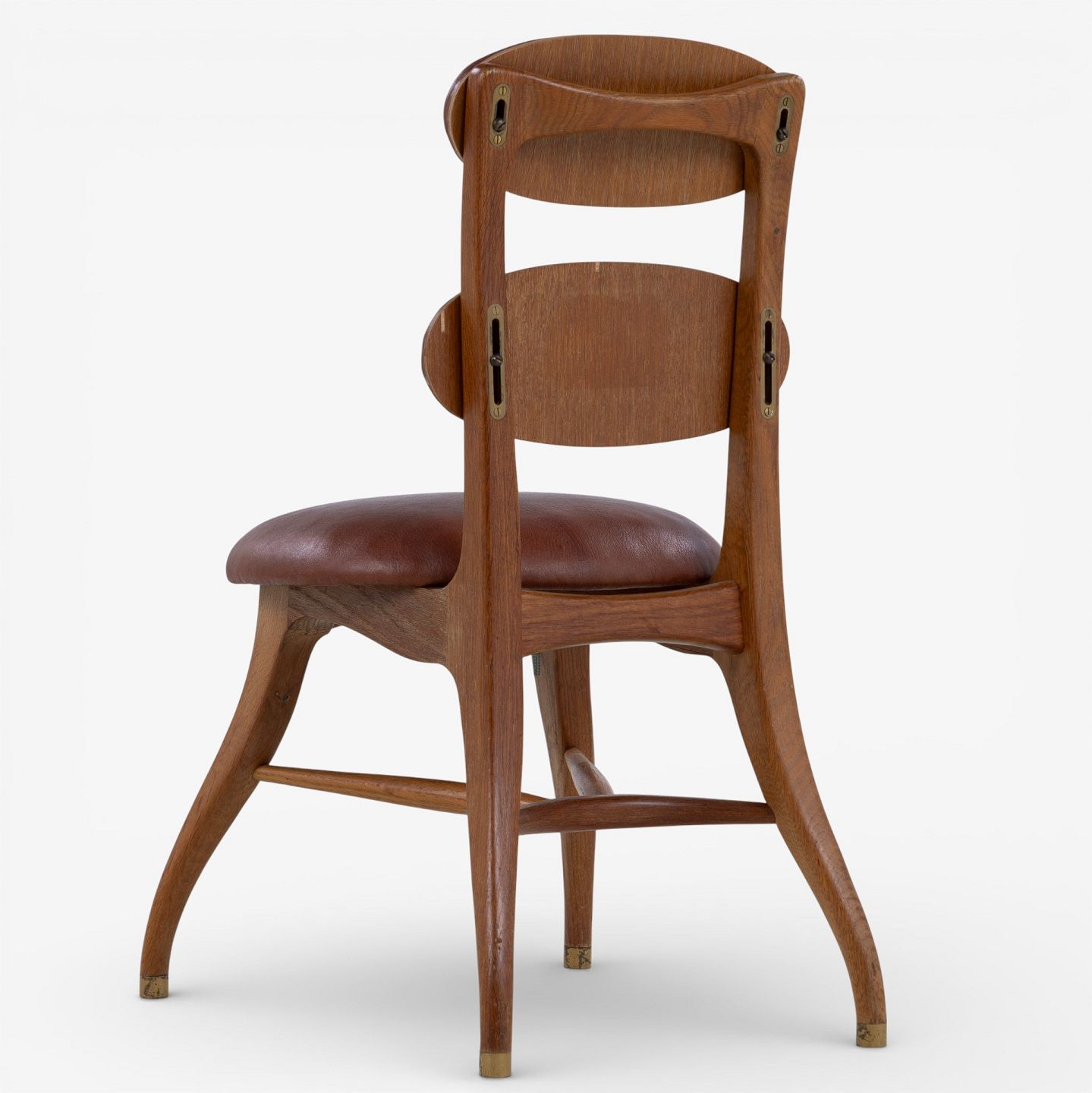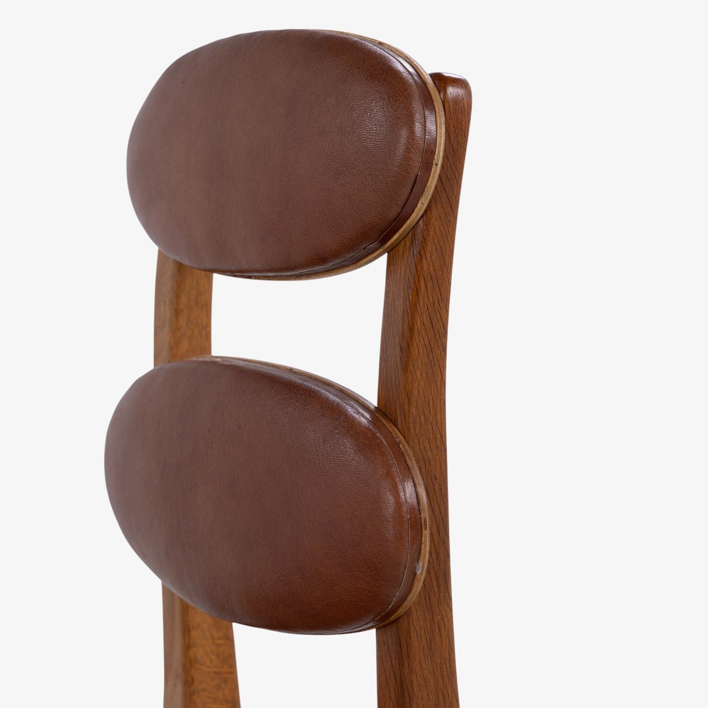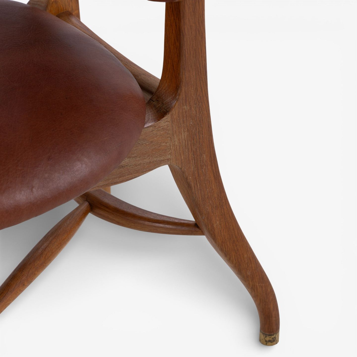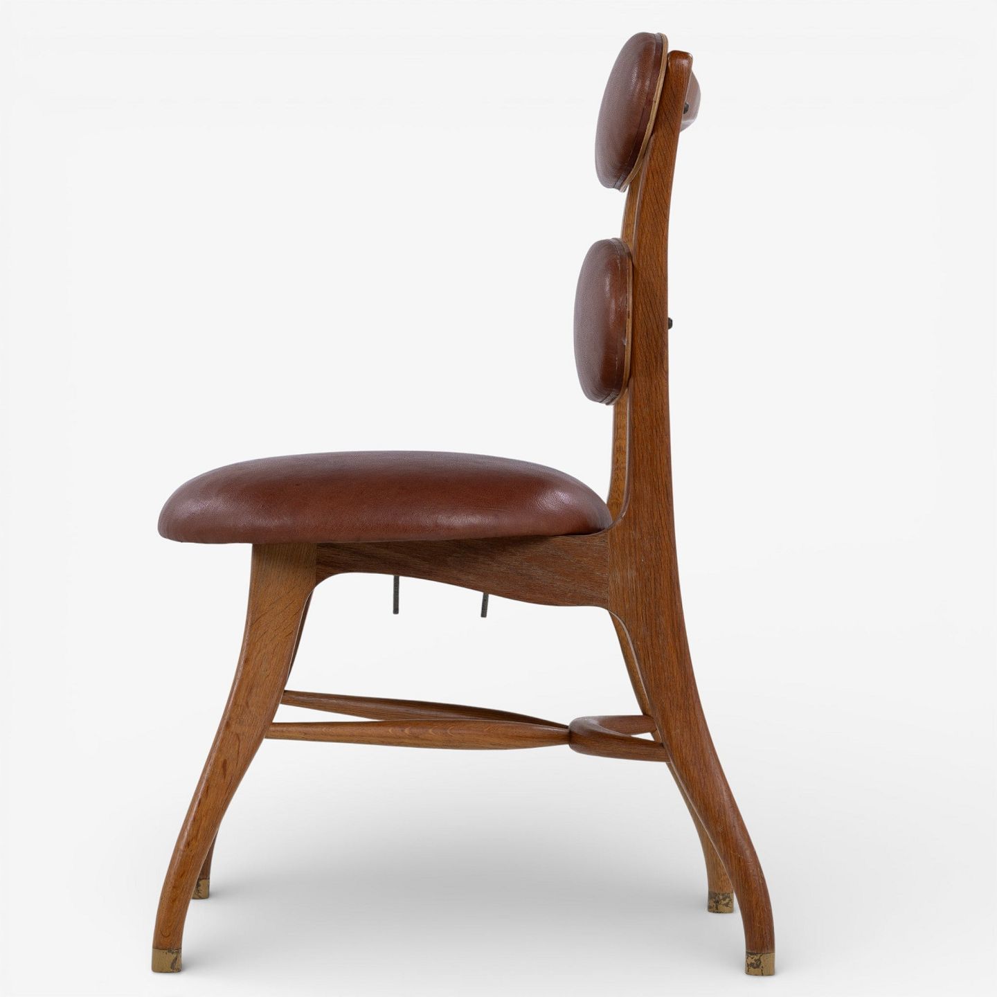 'Musician's chair' with a frame in patinated oak and an adjustable seat and back in patinated nigerian leather. Designed in 1942.