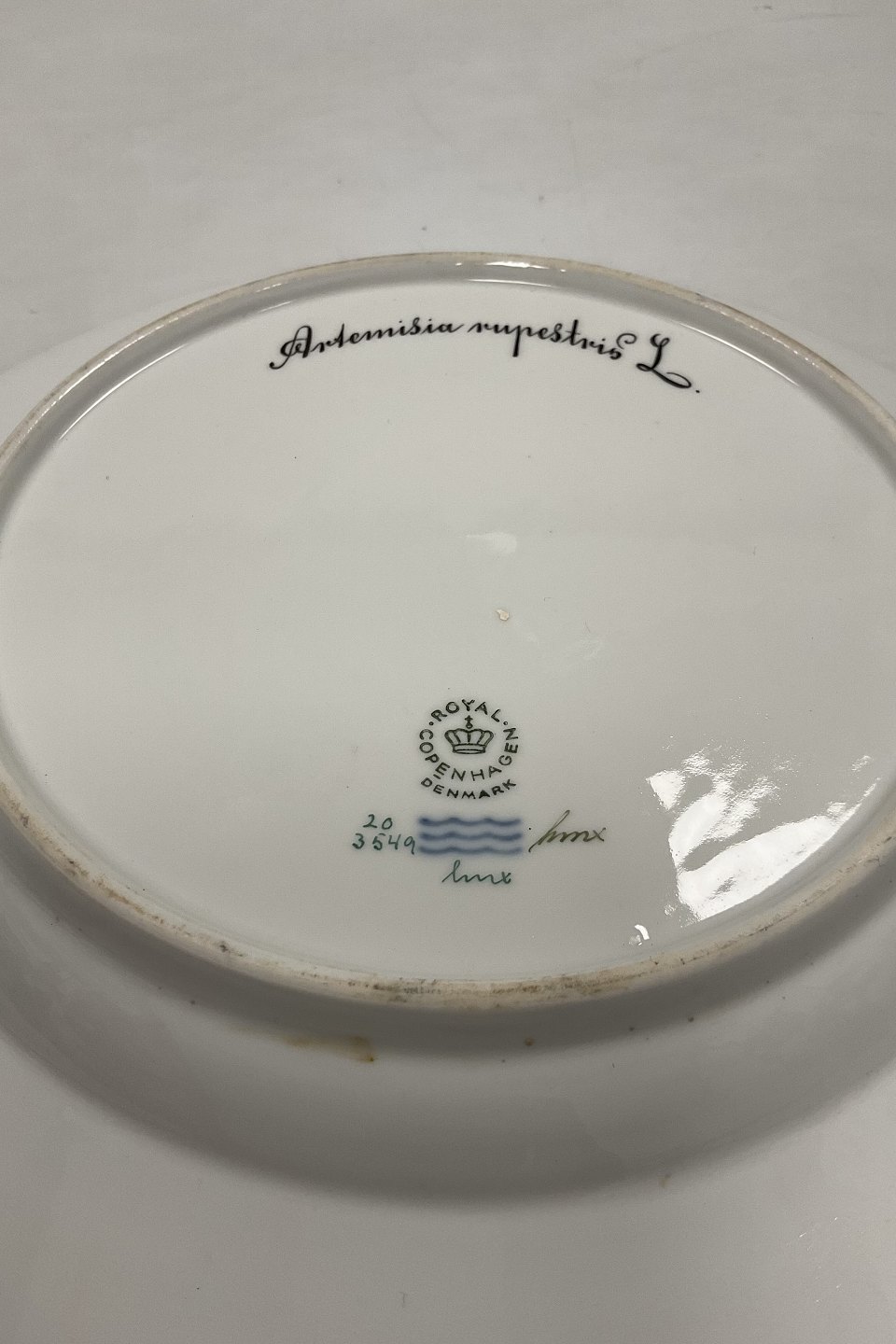 Royal Copenhagen Flora Danica Dinner Plate No 3549. Measures Diam 26 cm. (10 15/64 in) 1. Quality. Latin Name: Artemisia rupestris L.Has chip. See picture