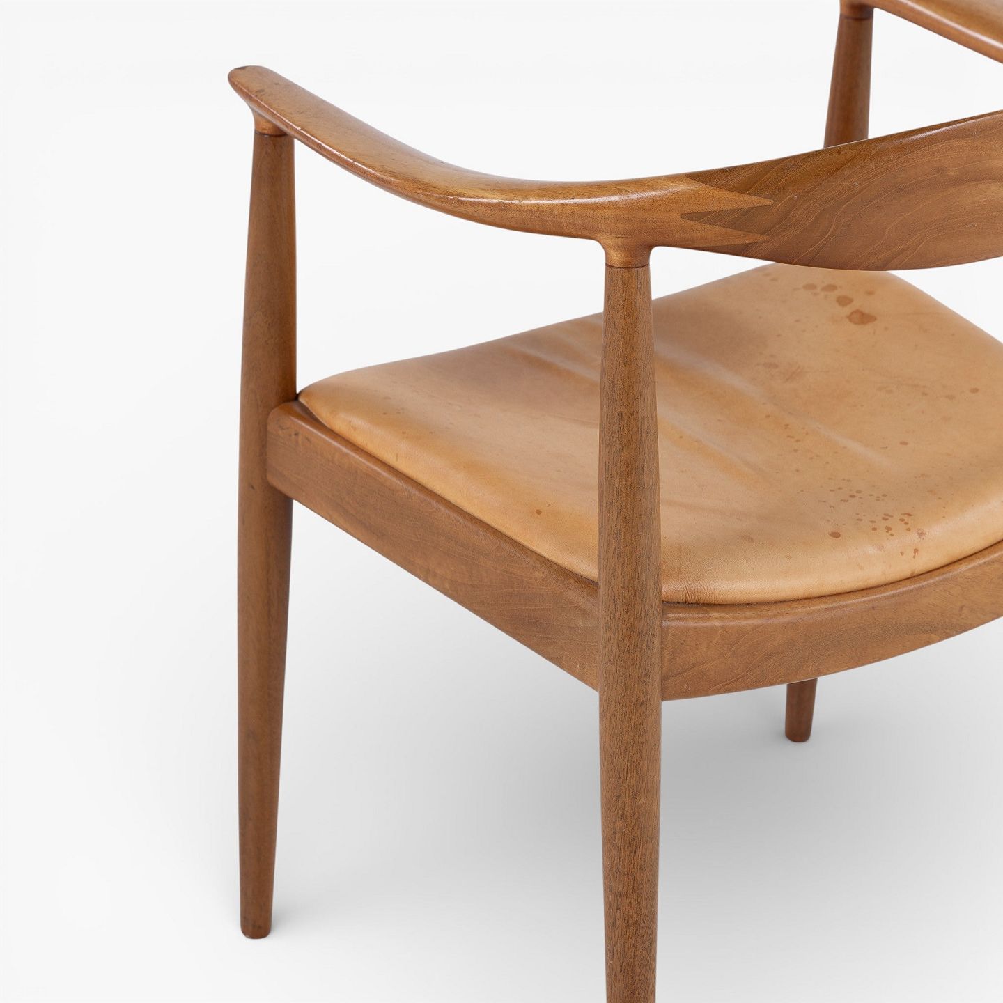 JH 503 - 'The Chair' armchair in mahogany with seat in patinated natural leather. Manufacturer's mark.
