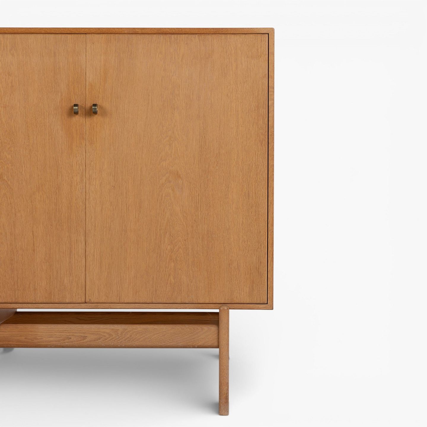 Sideboard in patinated oak with two doors and eight drawers with brass handles. Stamped by manufacturer.