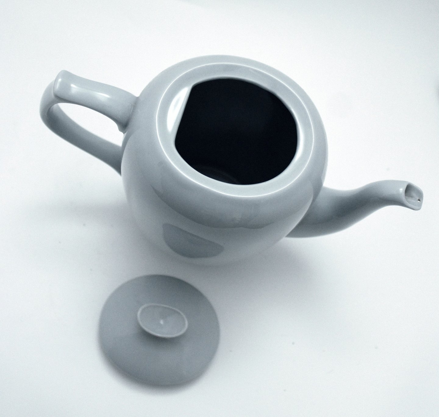 Bing & Grøndahl, Leda, Sart lysegrå/lyseblå stel. Kaffekande. Farven snyder meget, på billederne ser det lyseblåt ud og alt efter lyset ser det gråt ud.Kaffekande. Nr. 301. Højde 20,5 cm. Længde 22 cm. Bredde 10 cm.