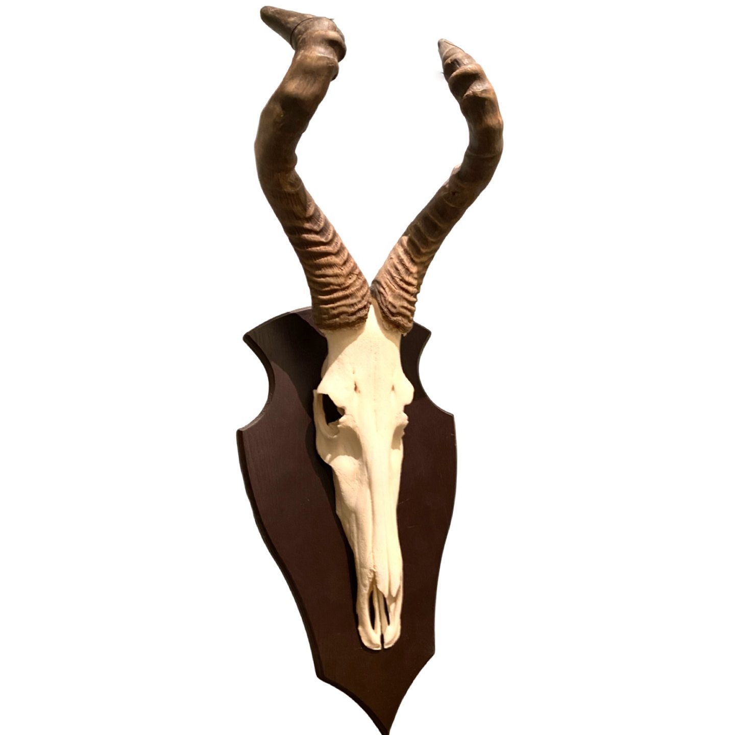 Hunting trophy of Hartebeest (red antelope) mounted on plate H. 90 cm.W. 30 cm.D. 30 cm.Item number: Jtf3