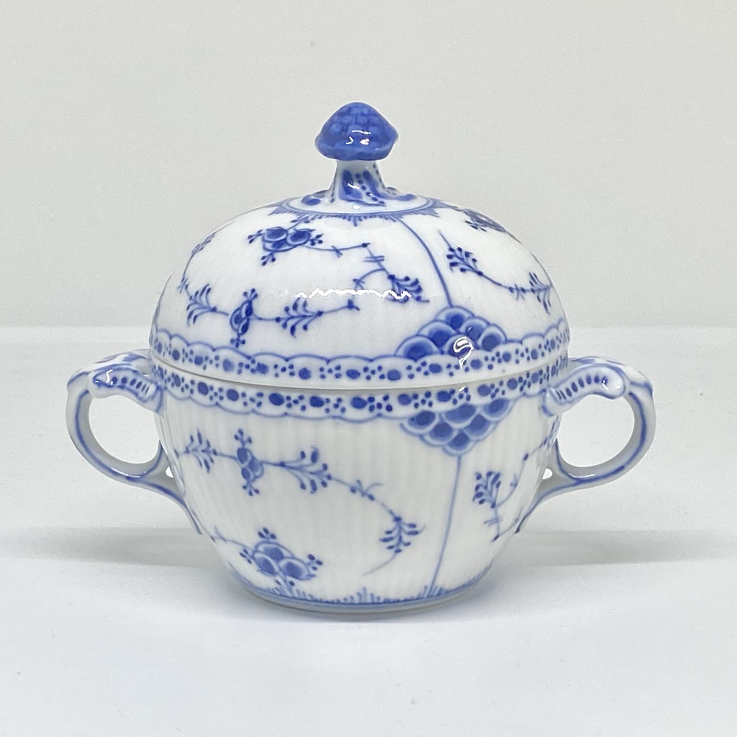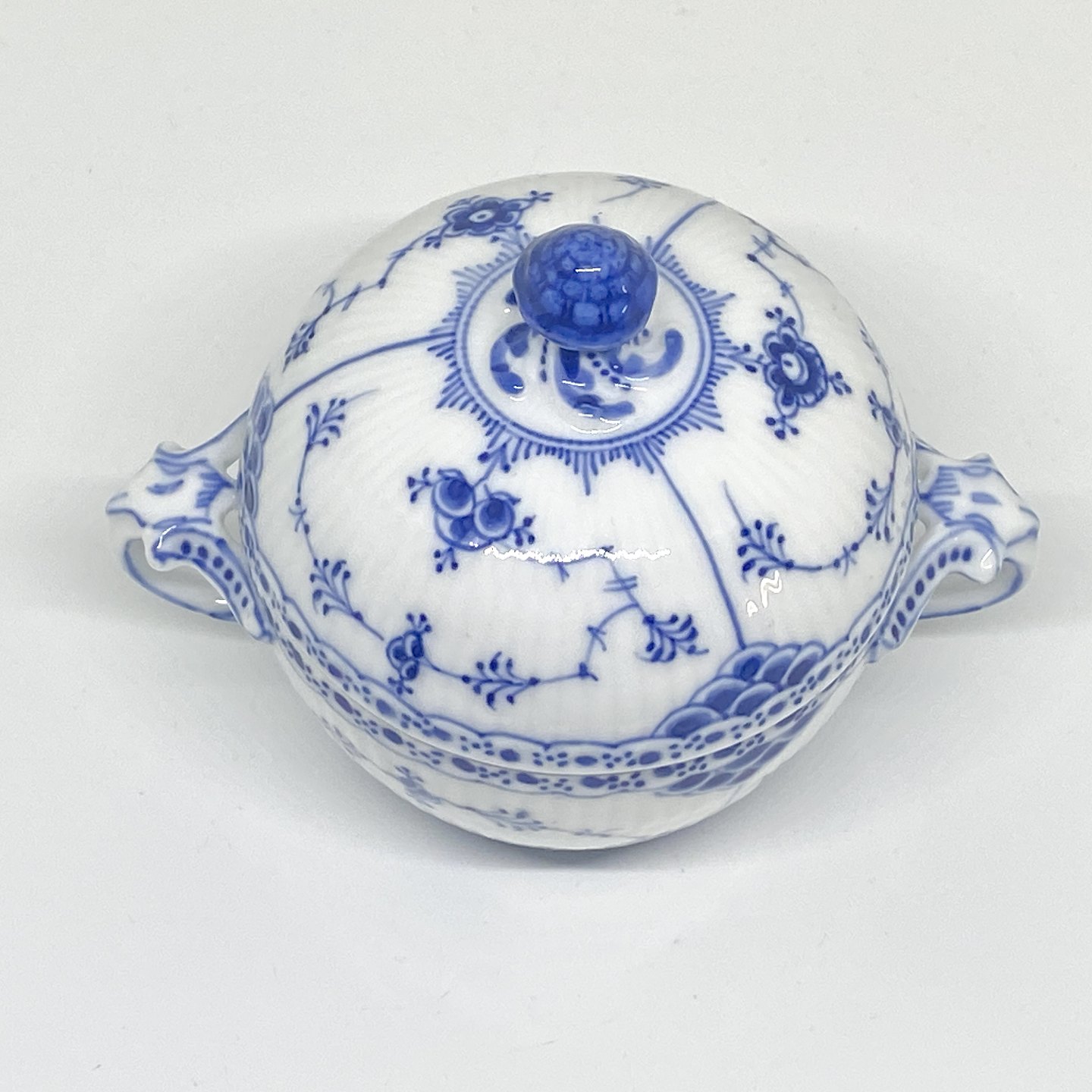 Royal Copenhagen/Kgl. Blue Fluted half lace. Sugar bowl with lid. Decoration number 1/6052 sorting. Dimensions: Ø 10 cm. H. 11 cm.