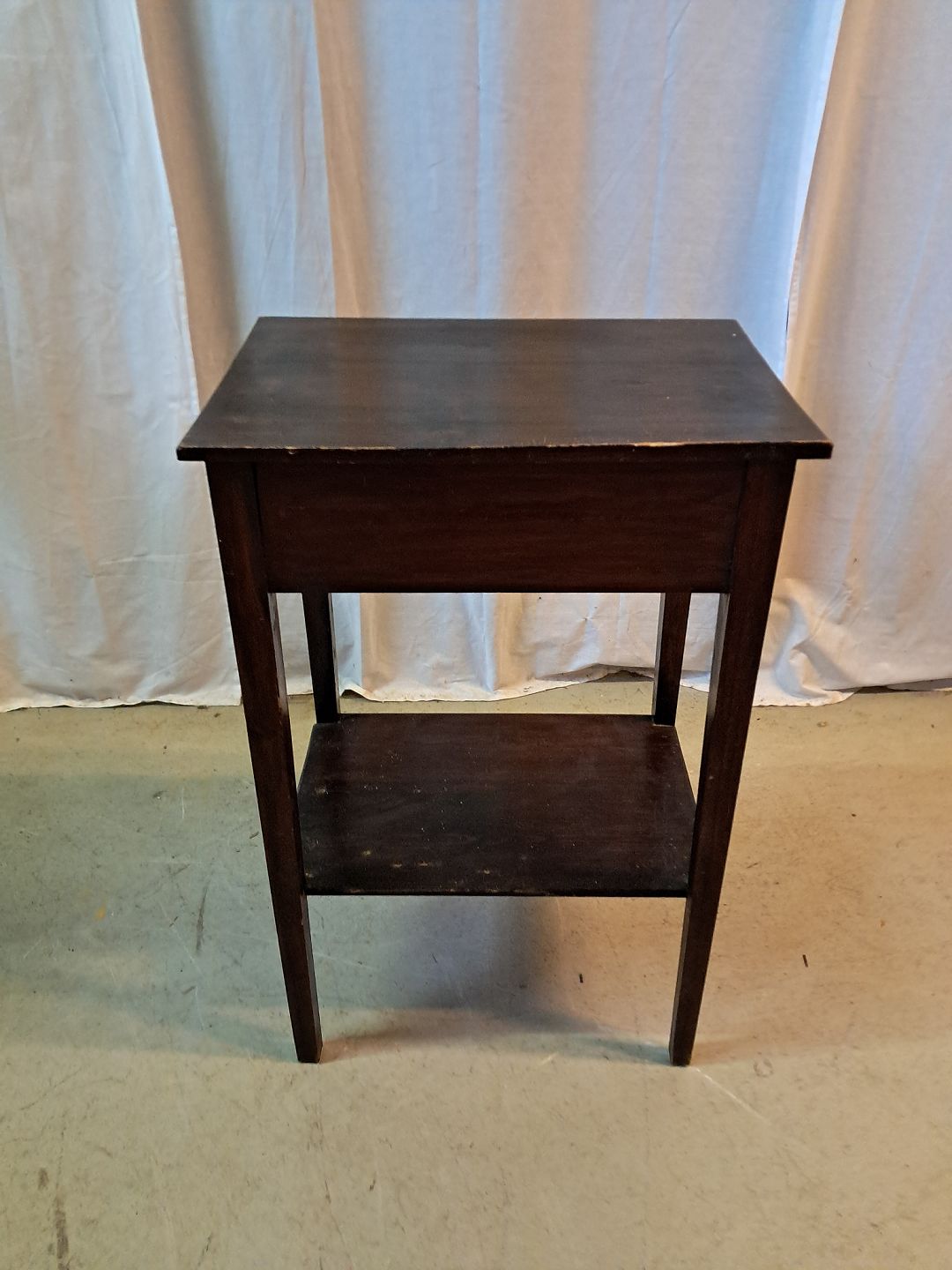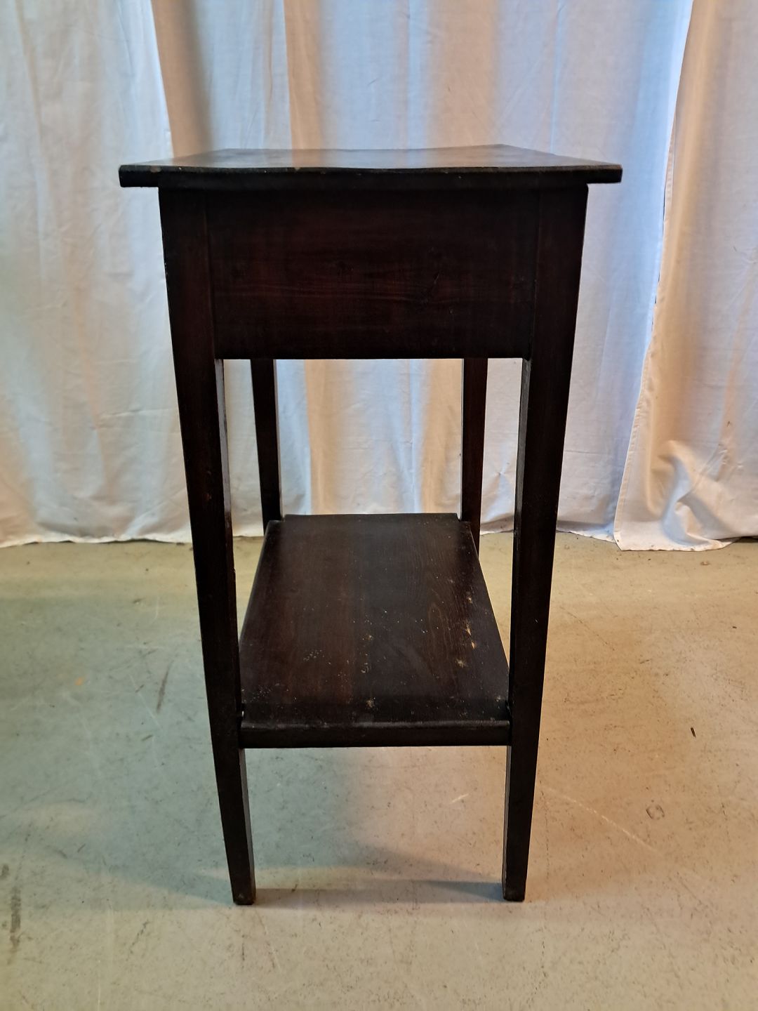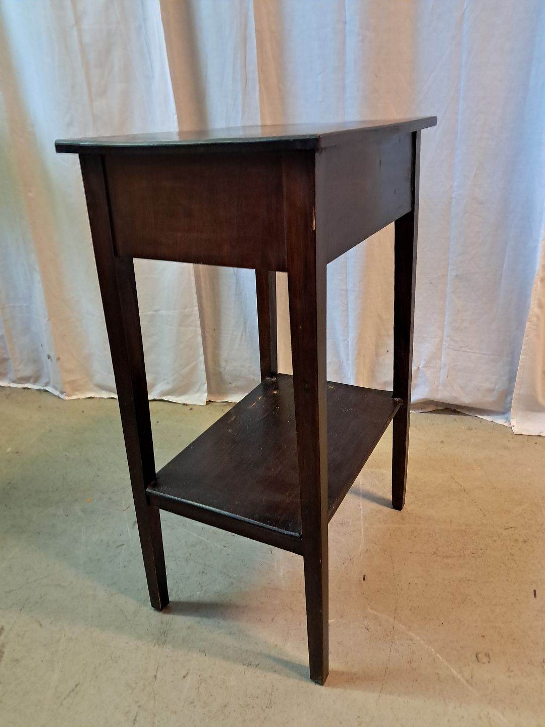 Lampebord i bejdset massivt fyrretræ, fra 1910erne.Det har brugsspor.