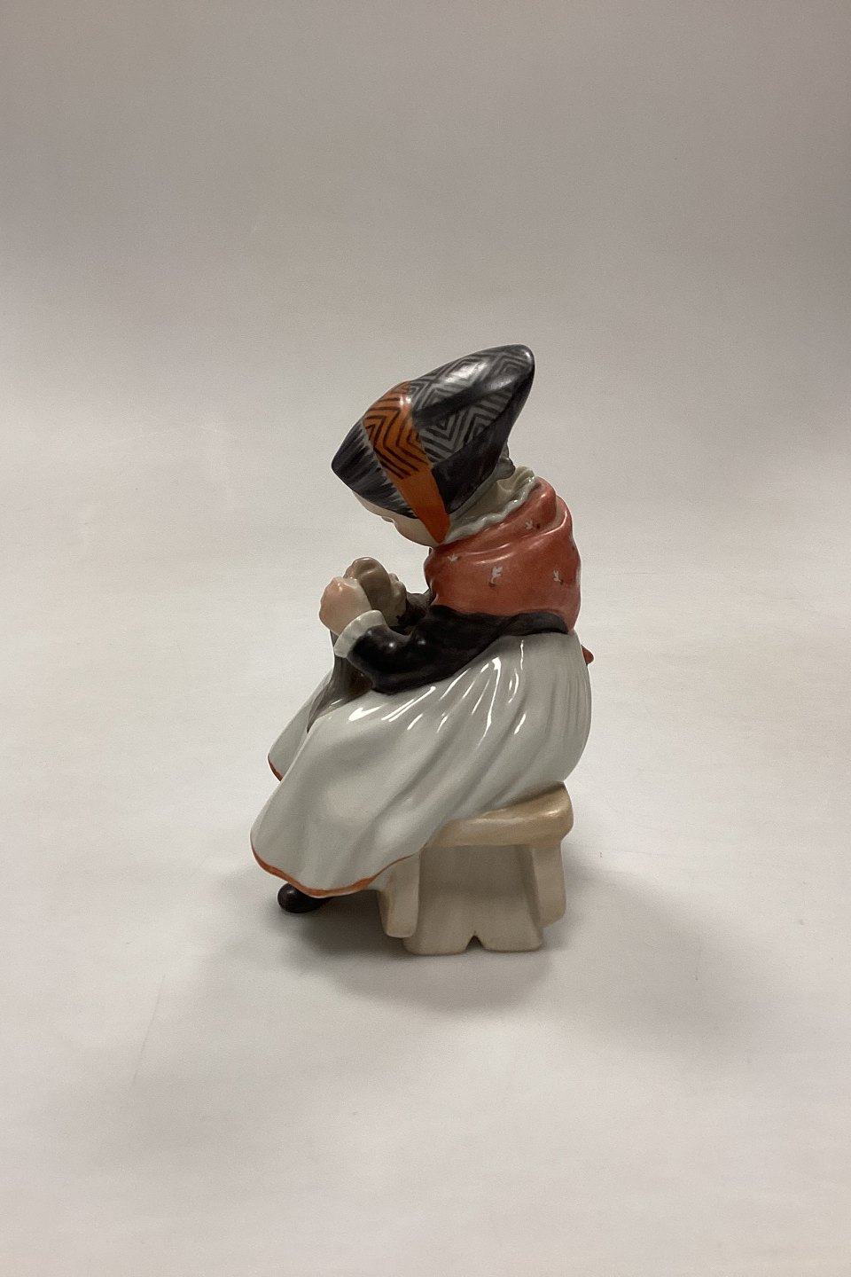 Royal Copenhagen Figurine - Amager Girl Knitting No. 1314. Designed by Lotte Benter in 1911.Measures 15 cm / 5.90 in. 1st Quality.