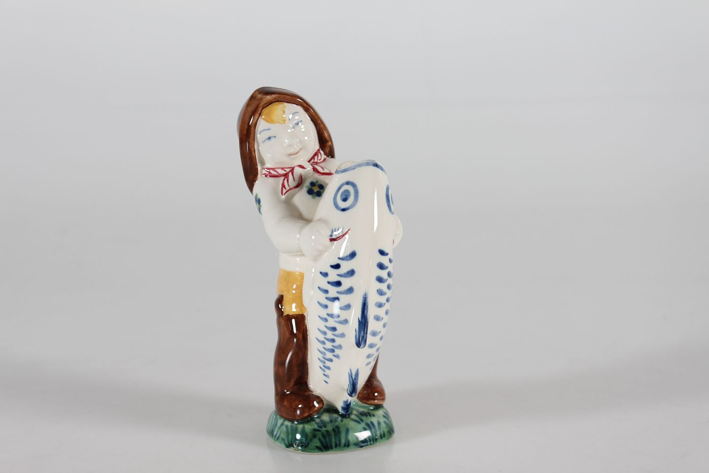 Aluminia Child Welfare Figurine"Skovserdreng" - Boy with fish 1946