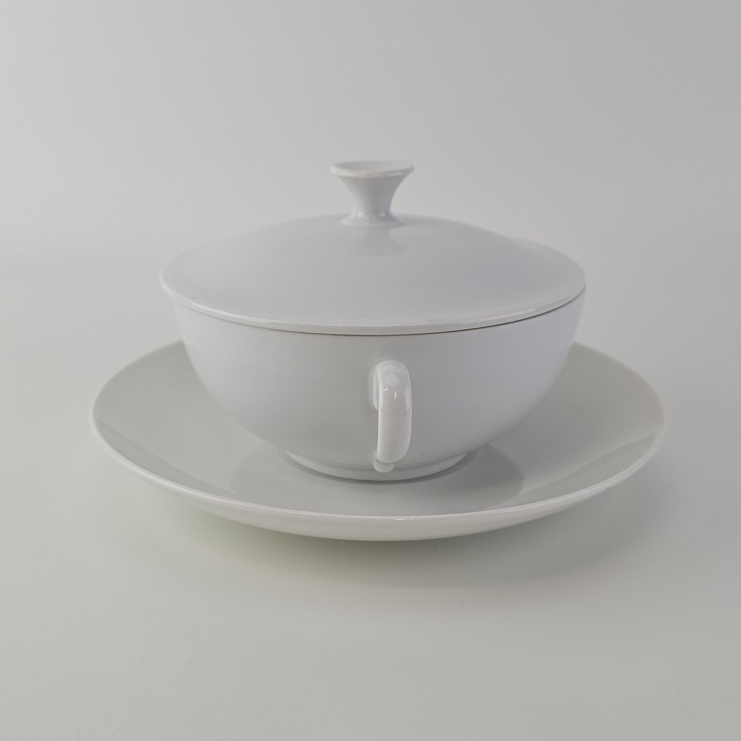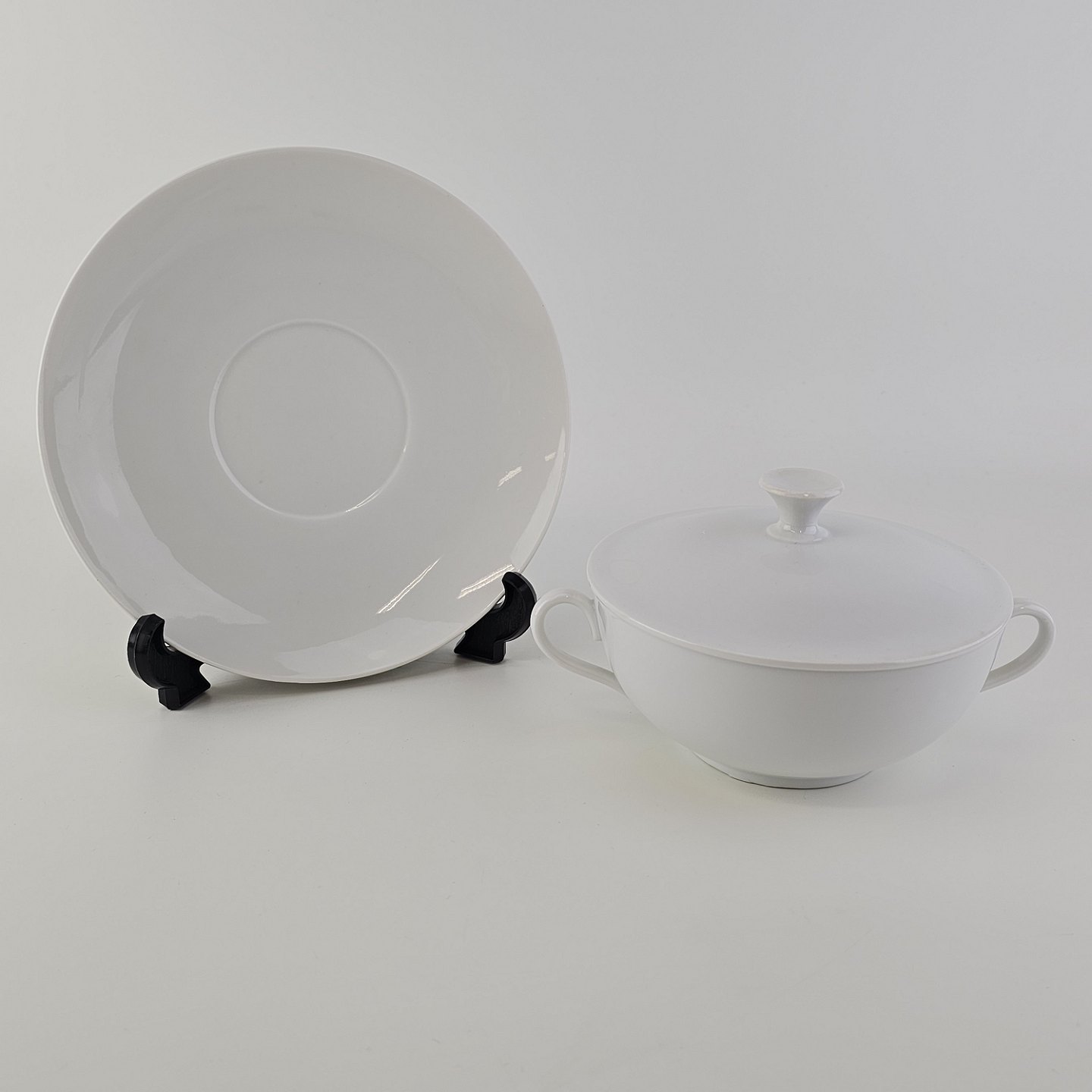 Bouillonkop med låg og underkop i glat hvidt porcelænStelform 601