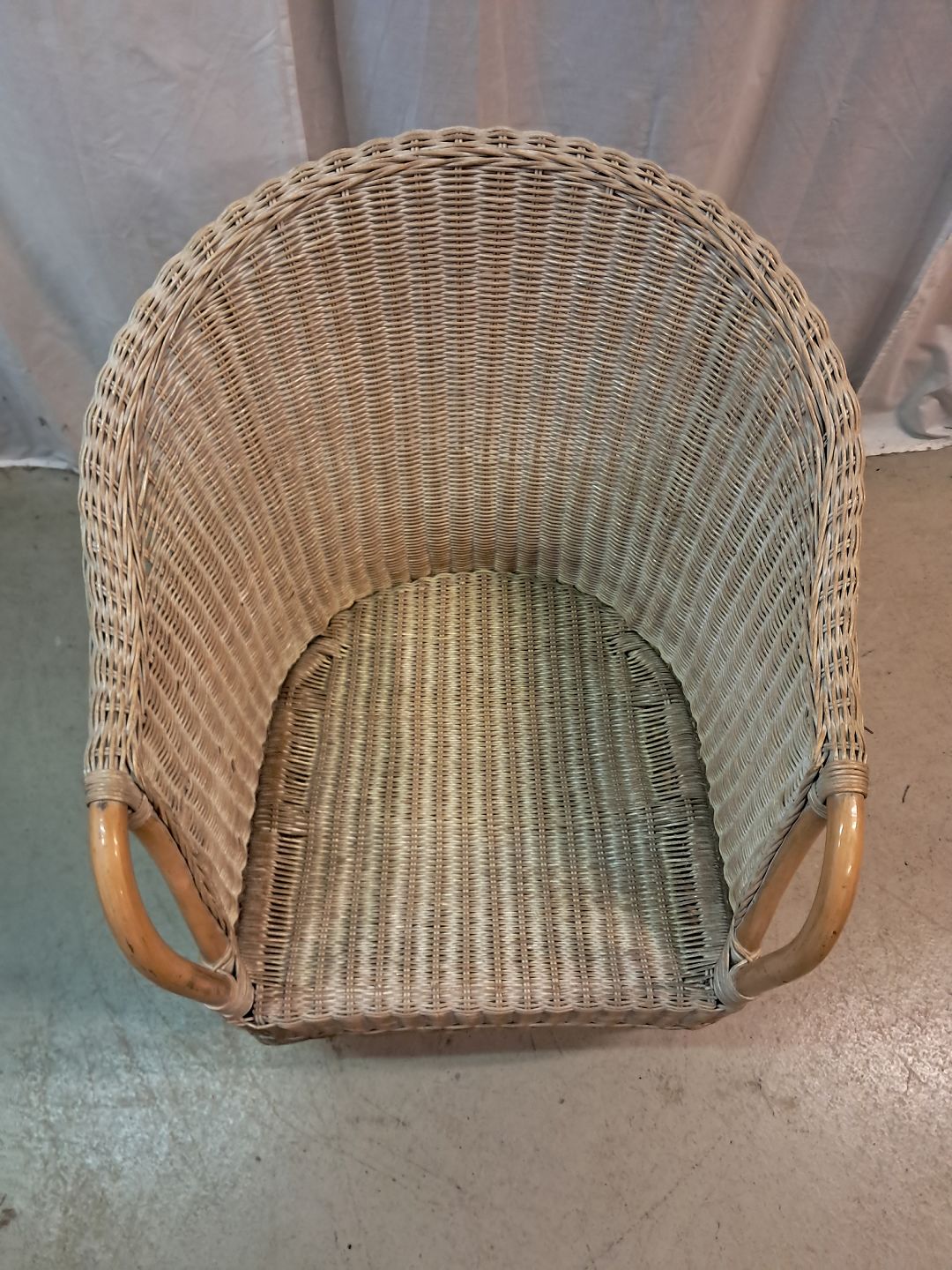 Stol i bambus og flet, fra 2000erne.Den har brugsspor.