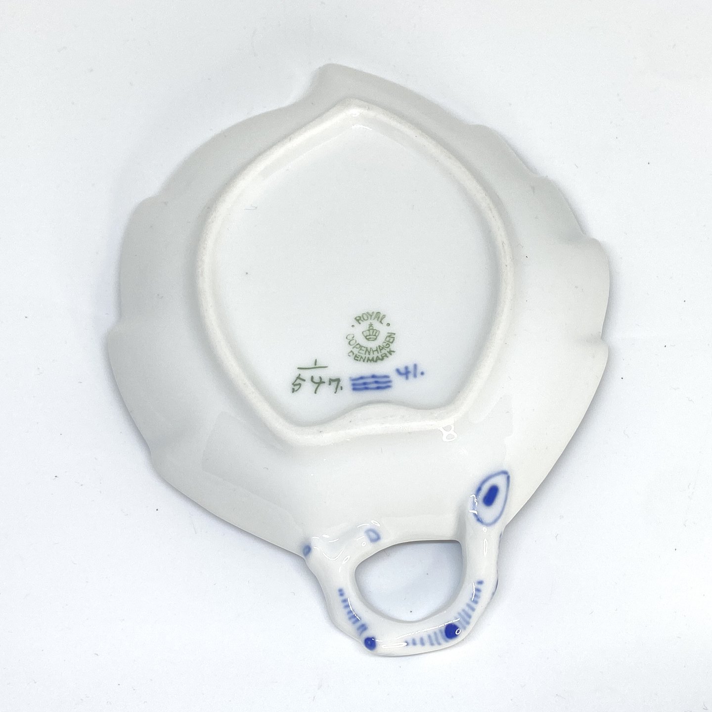 Royal Copenhagen/Kgl Blue Fluted half-lace leaf-shaped plate with fixed handle. Decoration number 1/547. 2nd grade. Dimensions: 18.5 x 14.5 cm.Item number: Kgl 162