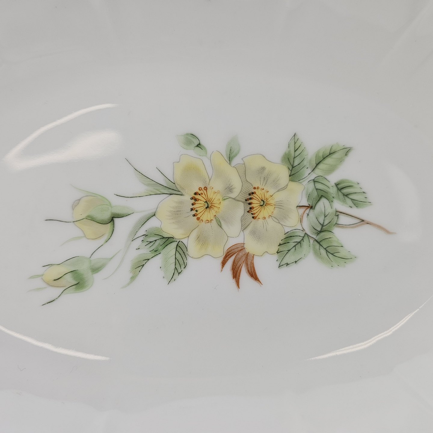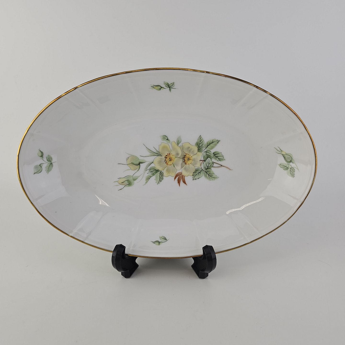 Ovalt fad i porcelæn fra stellet Klitrose. Nr. 314Producent Bing & Grøndahl
