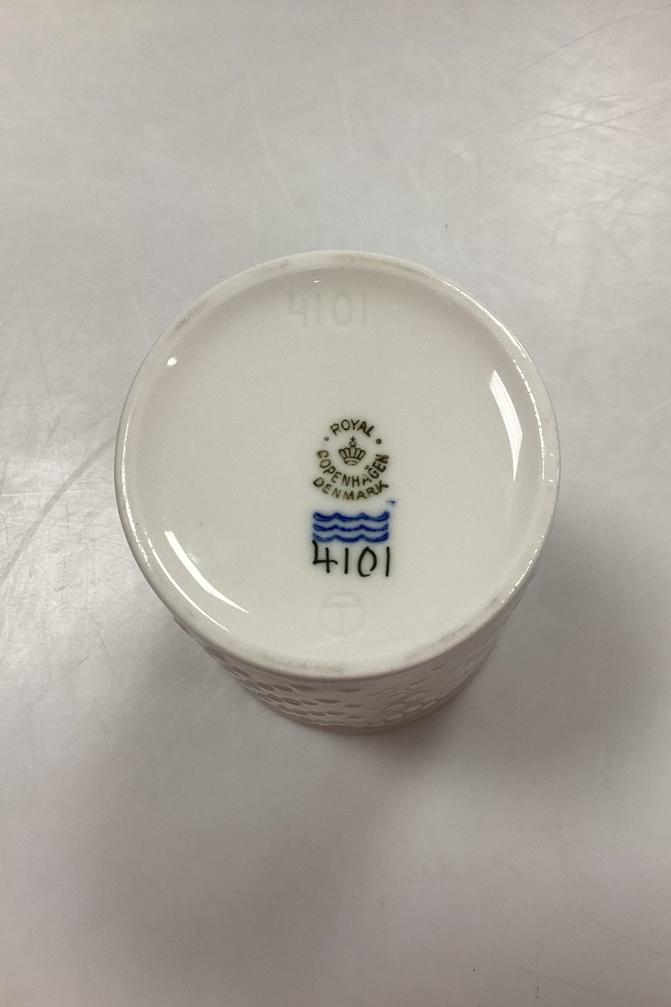 Royal Copenhagen Thorkild Olsen Vase No. 4101. Blanc de Chine porcelain with relief pattern.Measures 14.5 cm / 5.70 in. 1st Quality in fine condition.