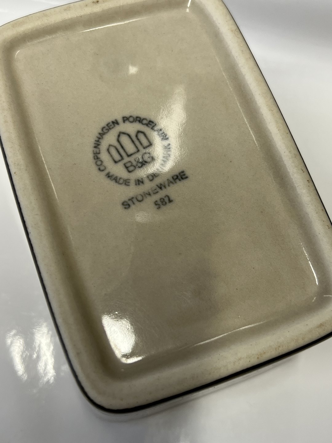 Bing & Grondahl Stoneware Set, Peru, Butter Box without Lid.Length 14 cm.