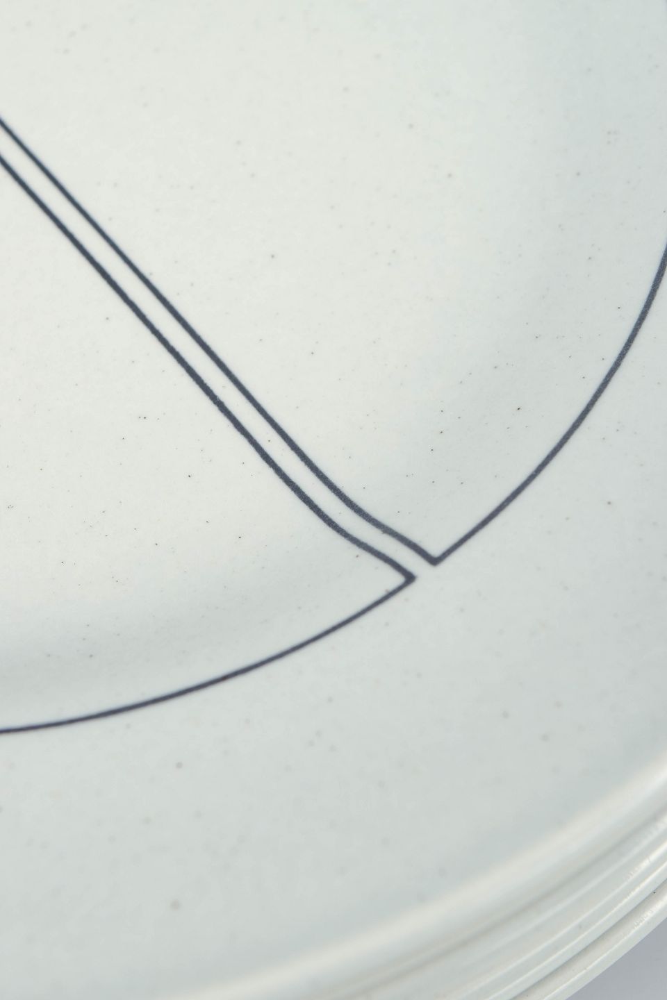 Stig Lindberg for Gustavsberg, plates. Set of eight.Flat faience plates with white glaze and graphic decoration featuring a black circle and diagonal line, produced in the “Demi” model.