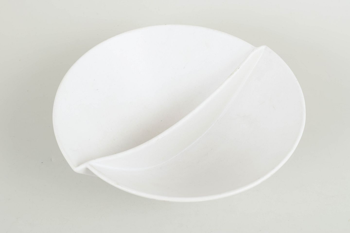 Stig Lindberg for Gustavsberg, Surrea bowl.Sculpturally shaped bowl in white-glazed faience with a softly curved, divided form characteristic of the Surrea series. The model is known for its organic, almost surreal expression, where function is combined with a strong artistic design. Executed without surface decoration, focusing on the lines and volume of the form.