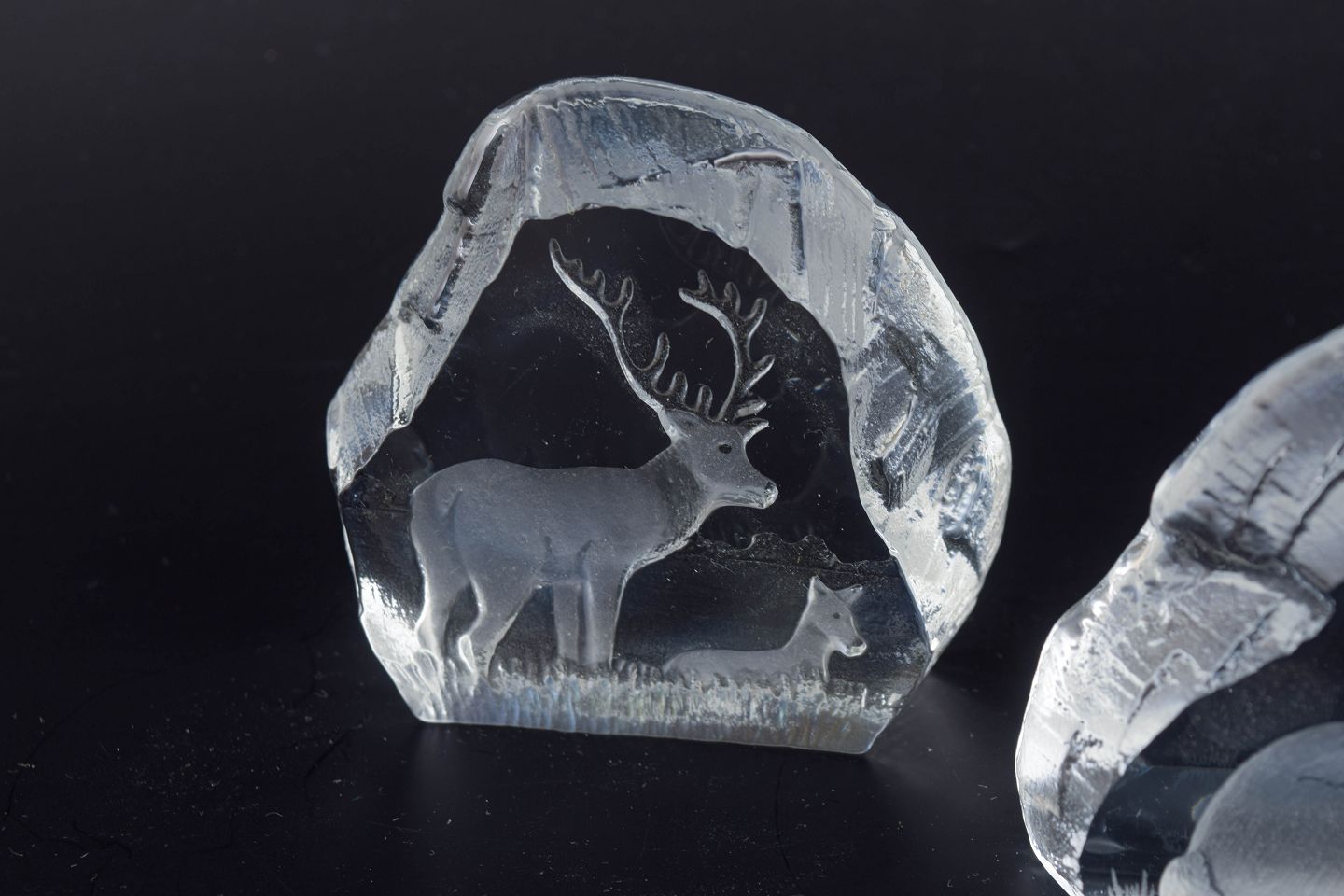 Paul Isling for Svenskt Glas, WWF art glass objects, set of 3.Sculptural glass figures with engraved animal motifs (moose, hare and wolf), executed in clear glass and issued as a limited edition in collaboration with WWF.