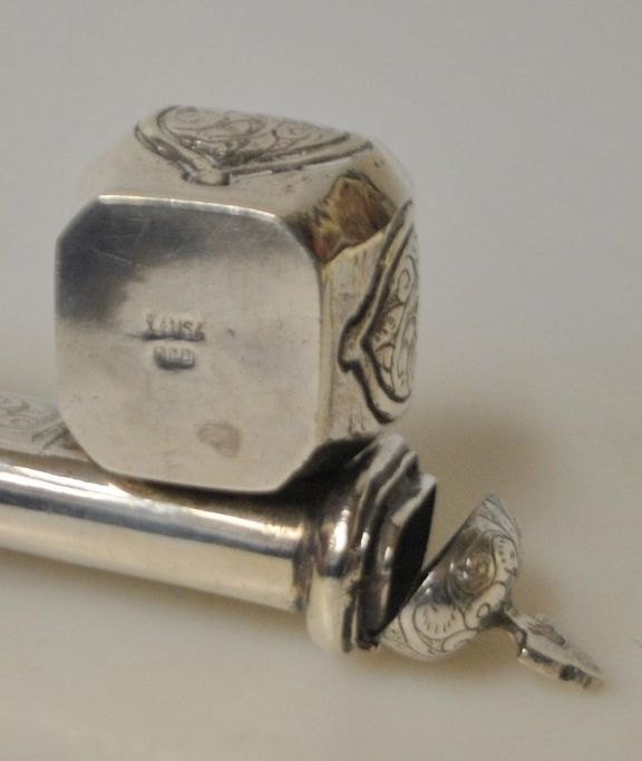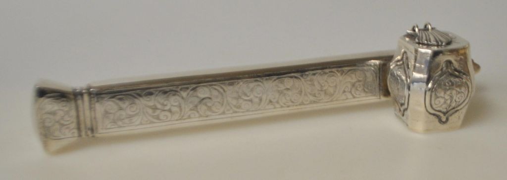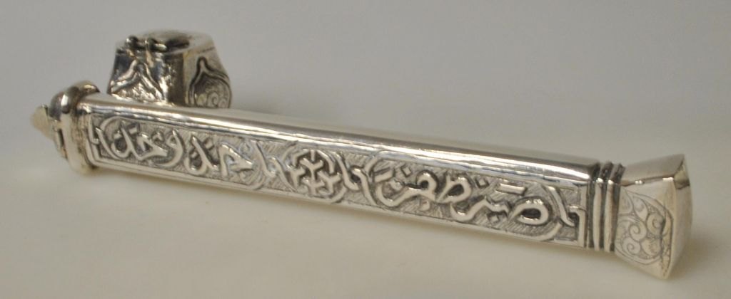 Indian travel writing set in silver, 20th century. 800/1000 silver. Stamped: LAMSA. With numerous decorations. L.: 23 cm. Weight: 219 grams.Item number: 28969