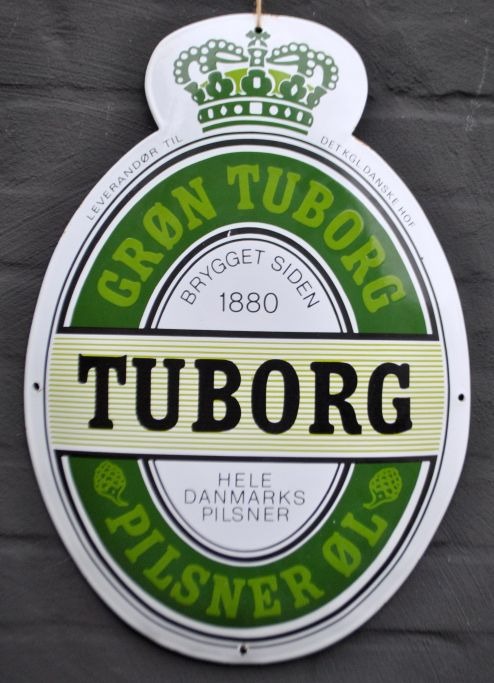 Green Tuborg enamel sign, 20th century. Denmark. In green, white and black colors. With four holes for hanging. H: 50 cm. W: 34 cm.Item number: 28971