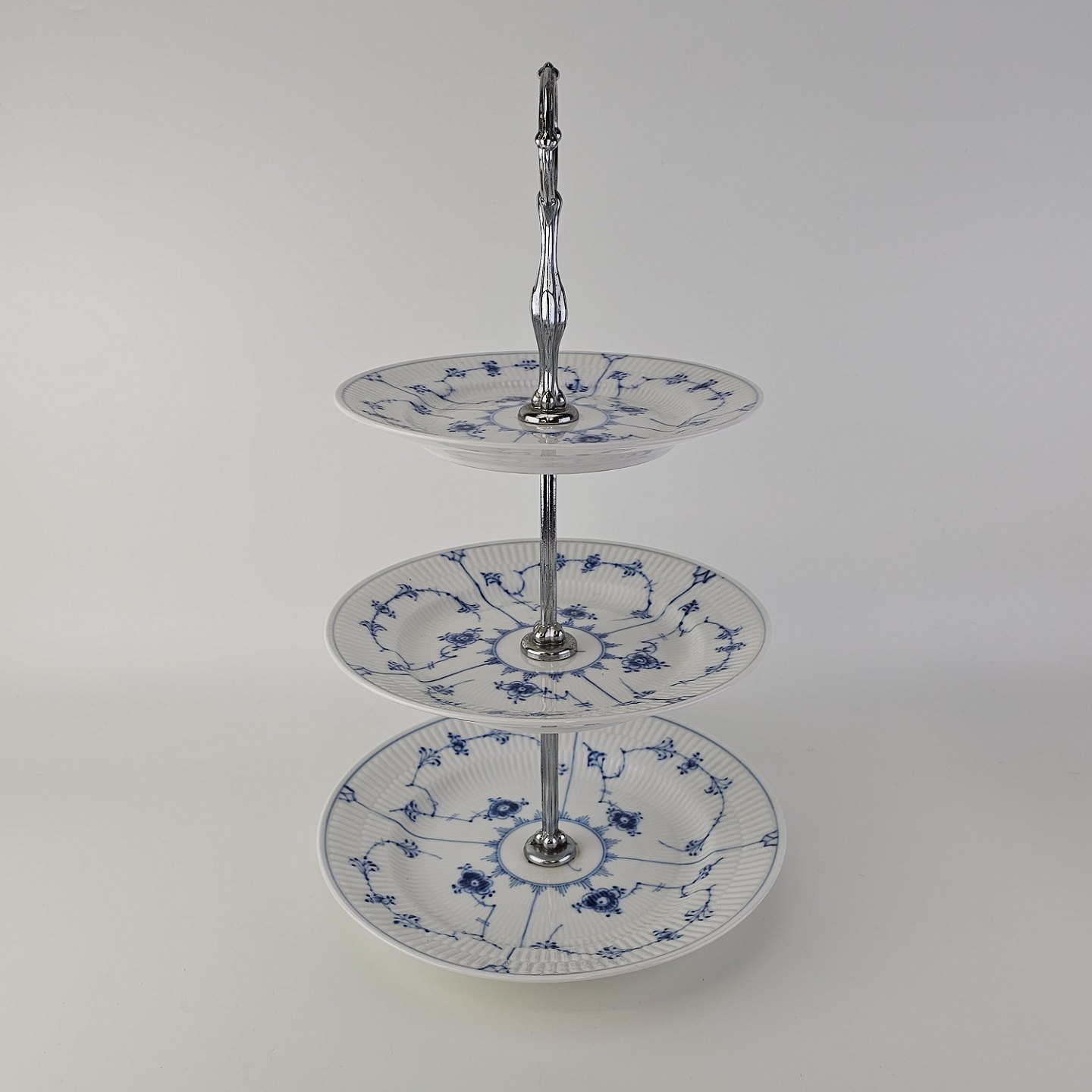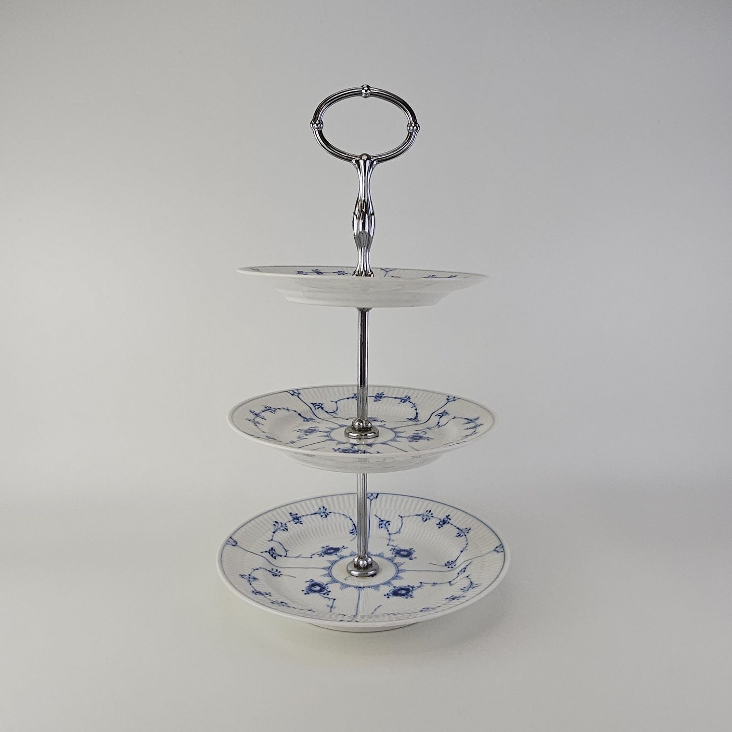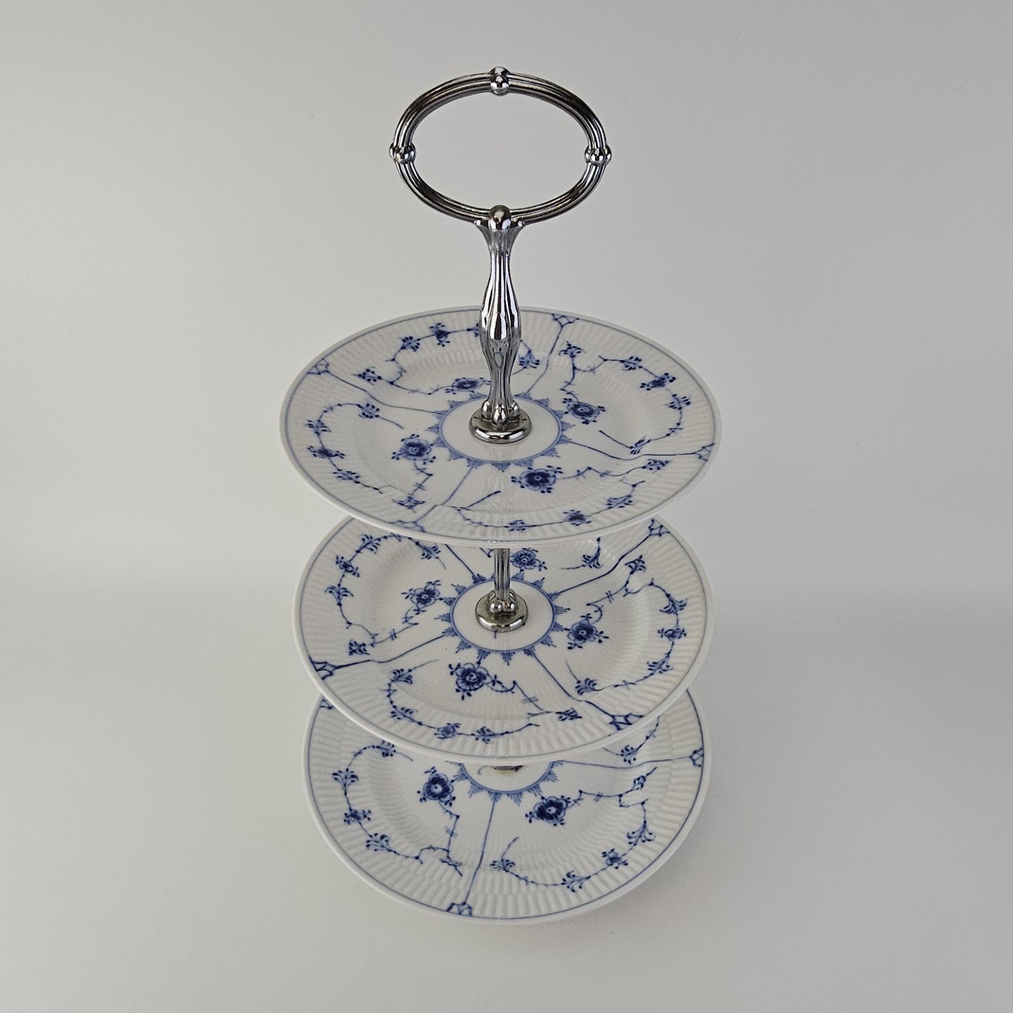 Kageopsats i tre lag i kongeligt porcelæn fra stellet Musselmalet riflet. Nr. 1/178