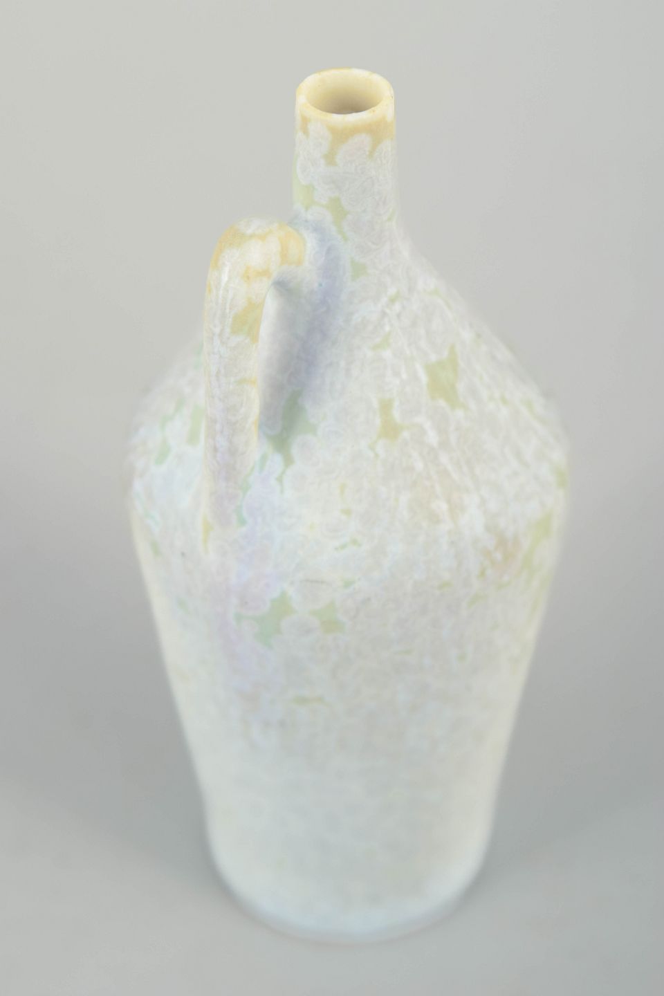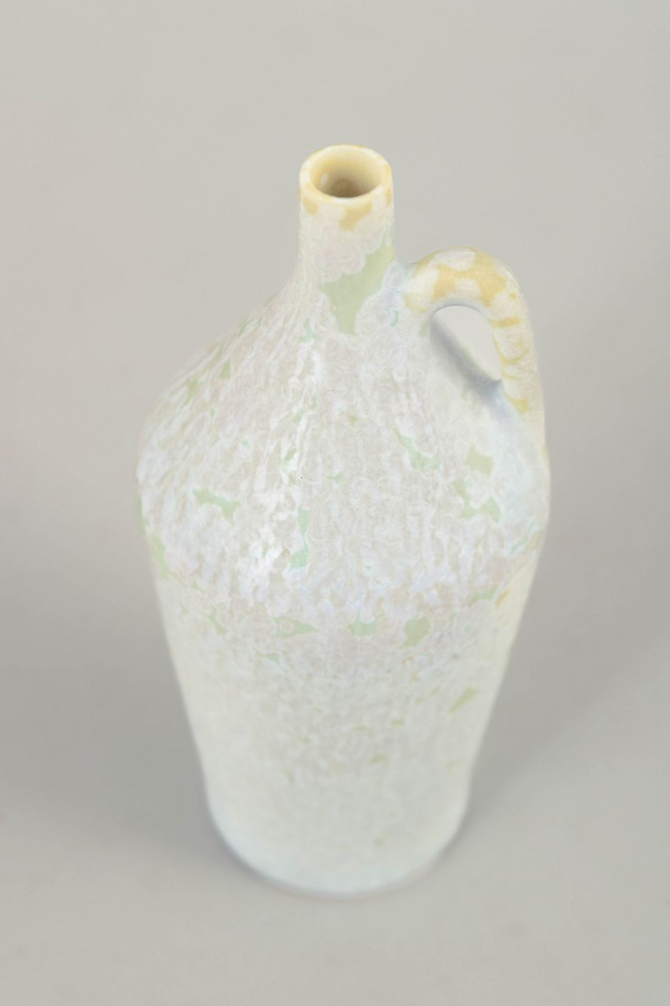 Gunnar Nylund for Rörstrand, miniature pitcher.Small pitcher in thrown stoneware with narrow neck and integrated handle, finished with a matte, lightly crackled glaze in soft white and pale greenish tones. Model 1556, first quality.