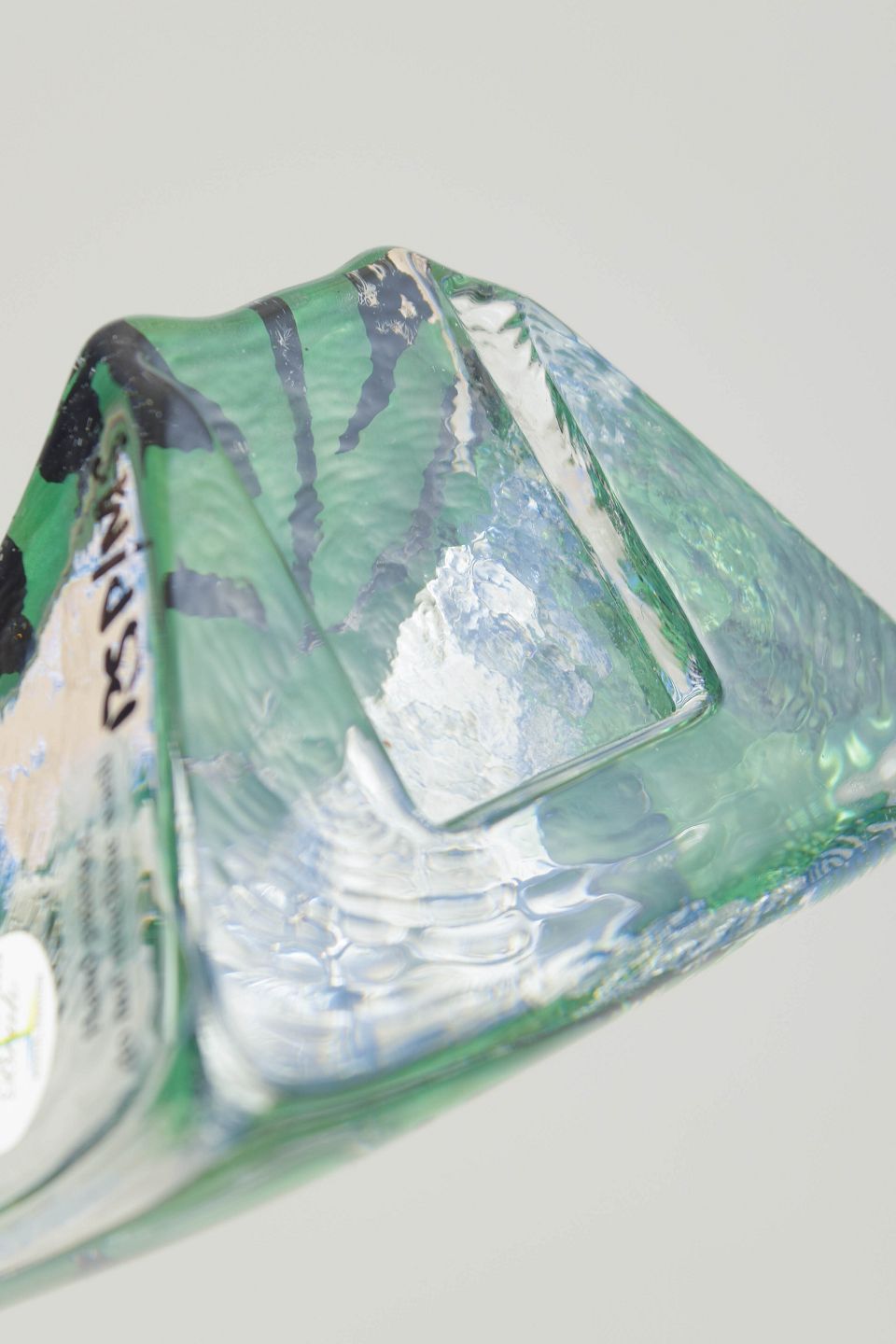 Both Kosta Boda and Sea Glasbruk were known in the 1980s for Swedish art glass with strong colours and playful, figurative motifs. Production often featured mouth-blown forms with encased figures and hand-painted graphic details, giving the works a distinctive and recognisable character. Such pieces combine studio glass tradition with decorative design and are today sought after by collectors.