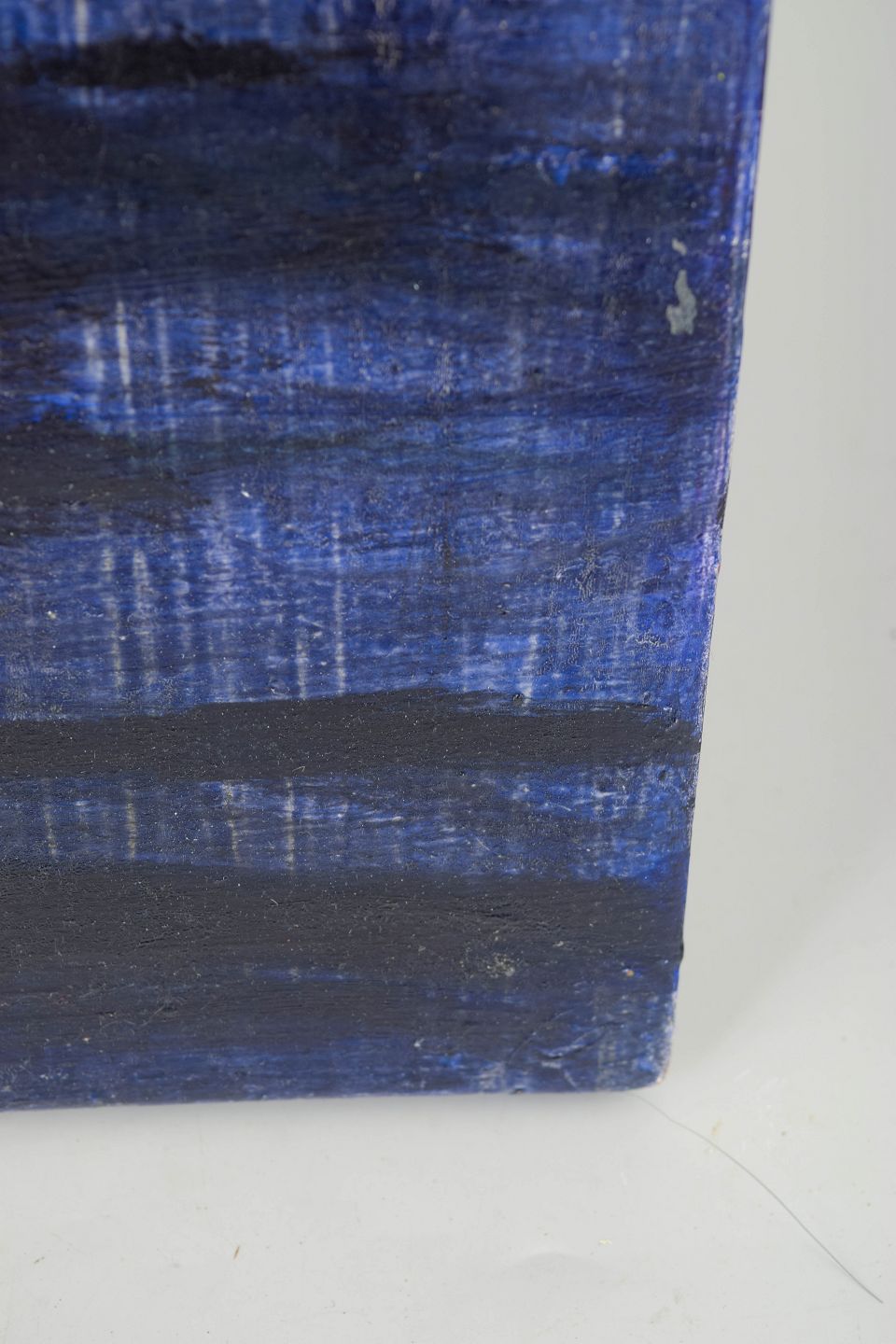 Johan Damm, oil painting, listed Swedish artist.Abstract and atmospheric composition with horizontal, reflective colour fields in blue and dark tones, executed in oil on board.