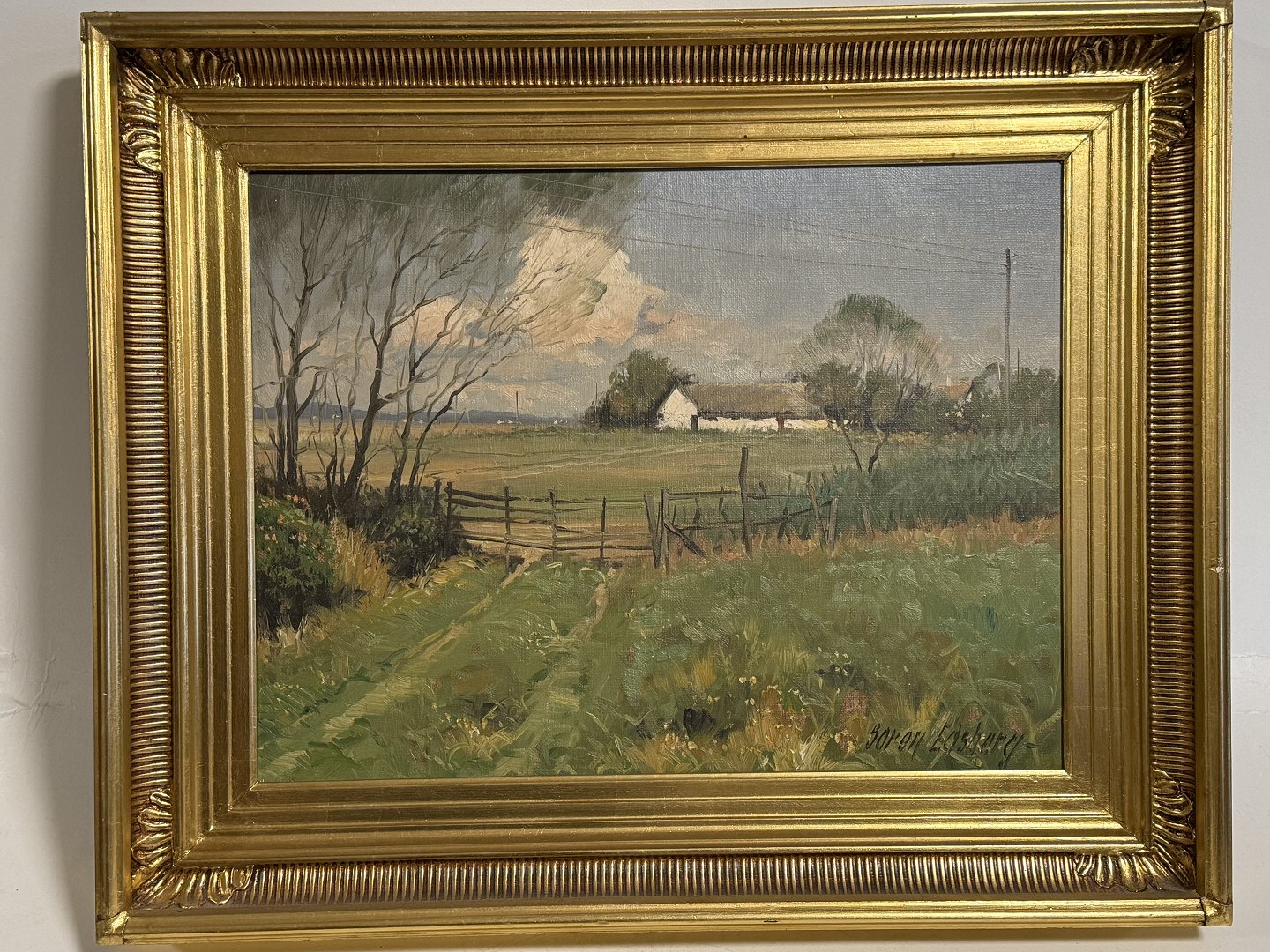 Søren Edsberg (b. 1945), Oil painting on canvas with motif from the countryside, Dimensions with frame: 53x43cm, small defect on the frame otherwise good conditionStock: 1