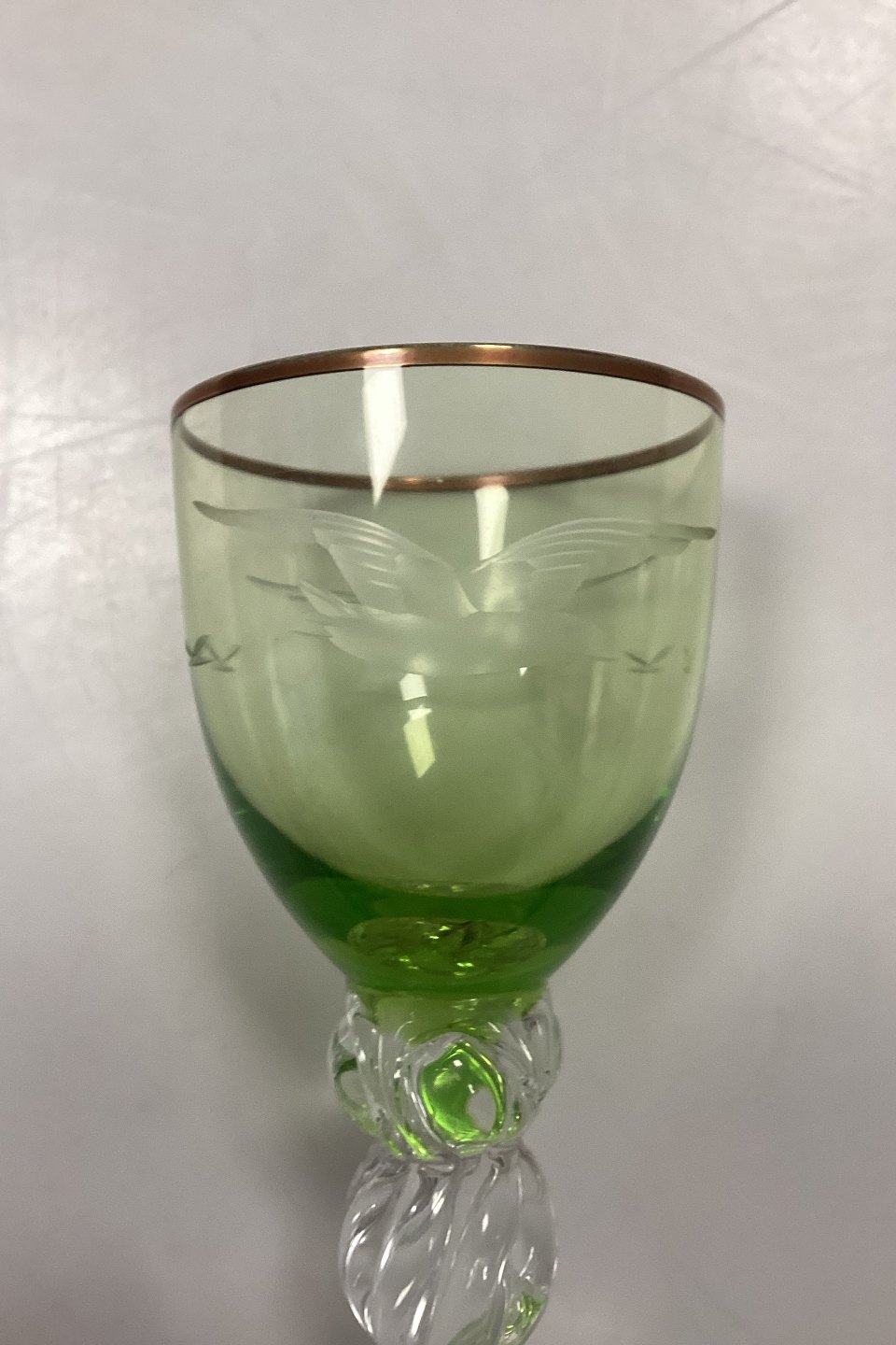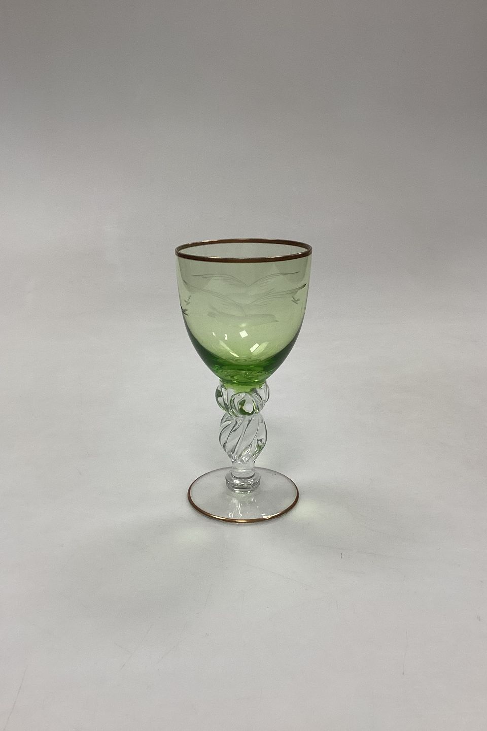 Lyngby Glassworks Seagull Green White Wine Glass. Measures 12.6 cm / 4.96 in.
