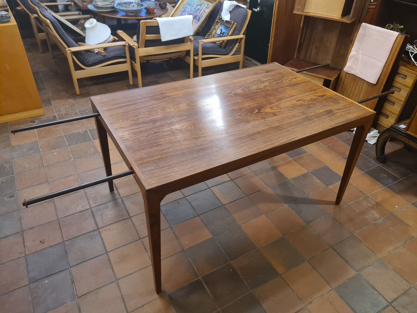 Kai Kristiansen spisebord m. 2 tillægsplader. Udført i fineret palisander ca. 1960'erne.