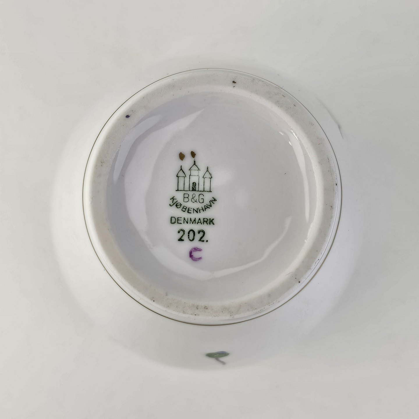 Antonius er af hvidt porcelæn med skælform dekoreret med håndmalede blå anemoner og guldkant. Også kendt under navnet Blå Anemone.