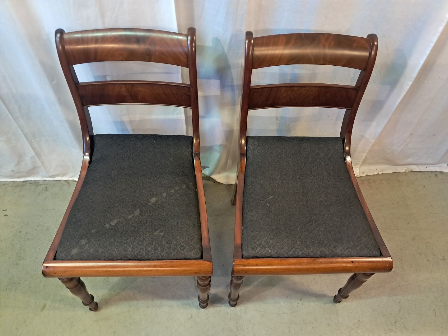 2 Salonstole i massivt mahogni og bøgetræ, fra 1910erne.De har brugsspor.