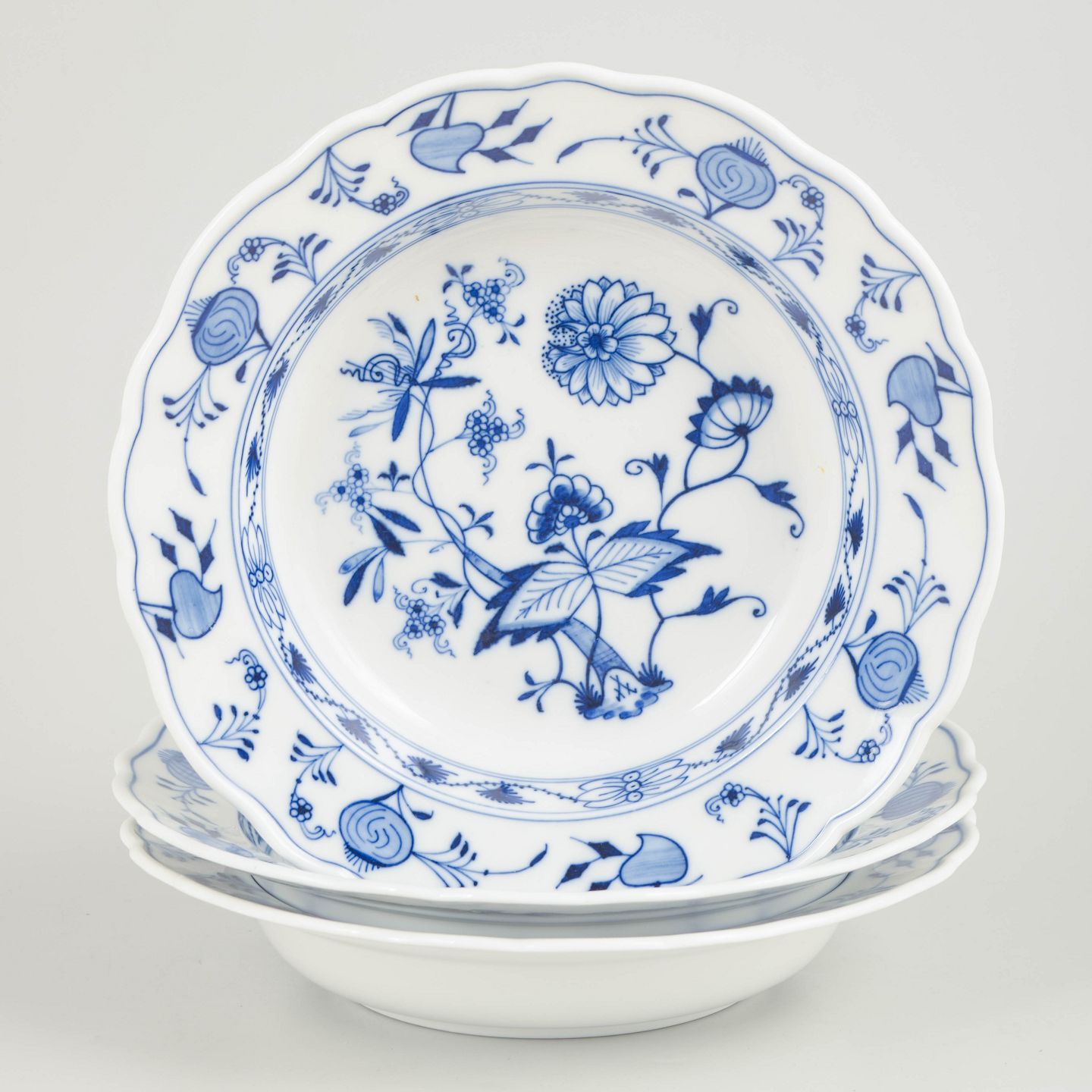 Meissen, Blue Onion deep plates, set of 3.