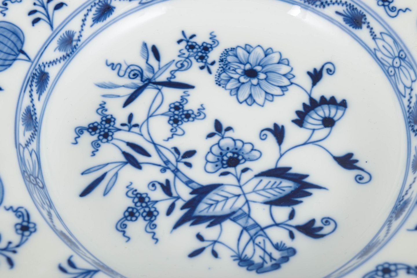 The Blue Onion pattern was introduced by Meissen in 1739 and was inspired by East Asian porcelain, featuring stylised floral and fruit motifs rendered in underglaze blue. It became one of the manufactory’s most enduring designs. Around 1900, Meissen continued producing Blue Onion tableware of consistently high quality. Deep plates from this period were intended for soups and serving dishes and reflect the manufactory’s long-standing standards of craftsmanship, durability, and decorative clarity.