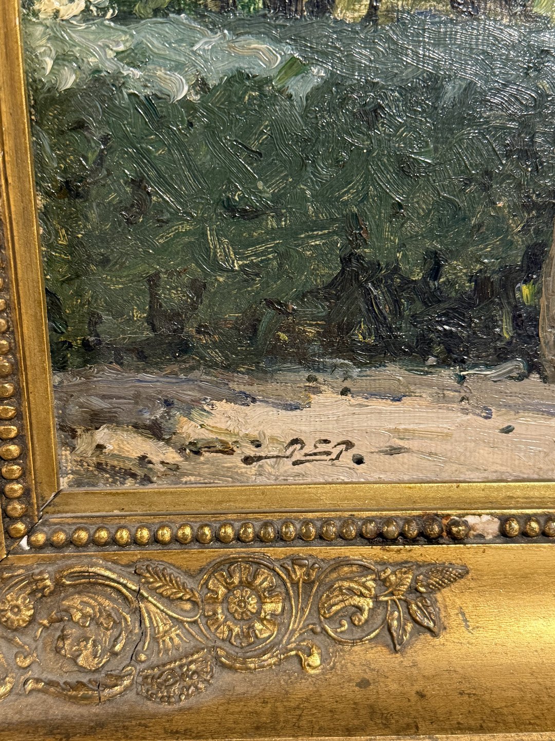 Peter Elias Petersen (1859 - 1950), Oil painting on canvas, Backyard motif probably from Copenhagen, signed P.E.P. and inscribed P.E.Petersen 1922, Dimensions: 39x45cm *A few small chips on the frame otherwise fine condition*