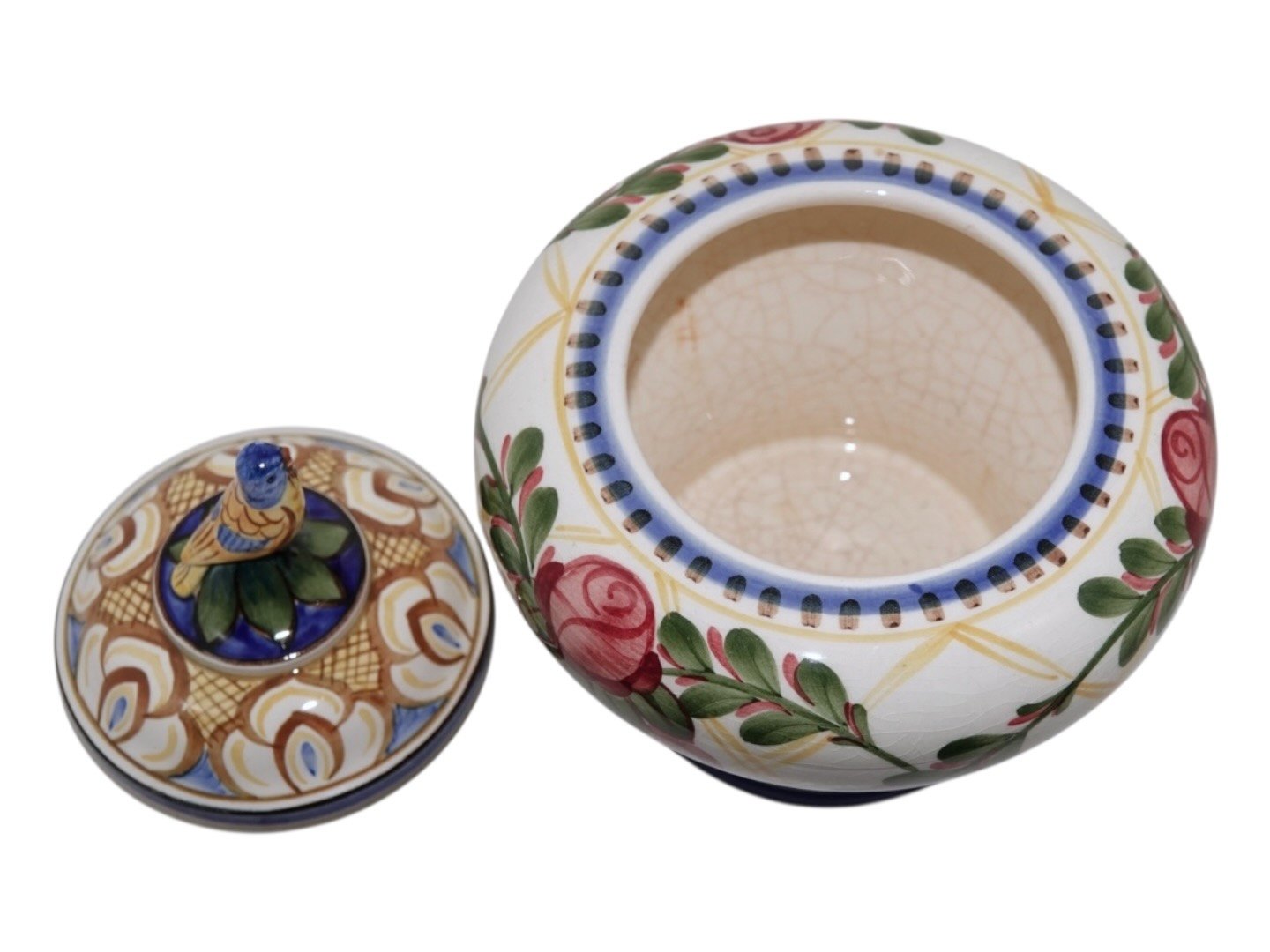 Lidded bowl with bird