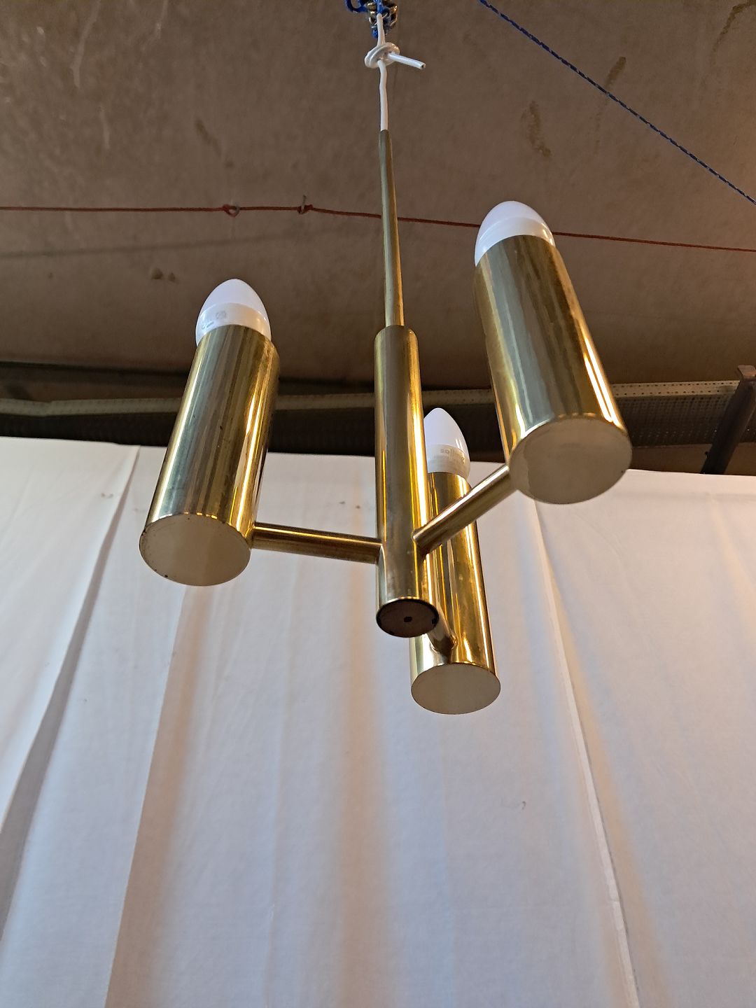 Loftlampe i messing med skærme, fra 1950erne.Den har brugsspor.