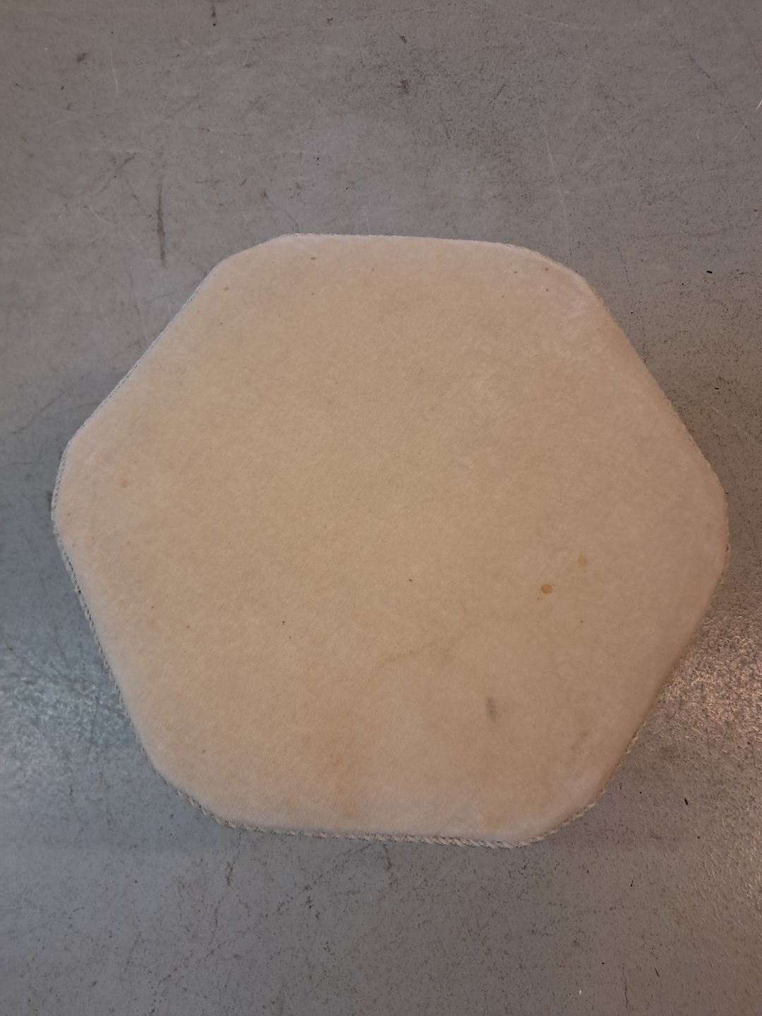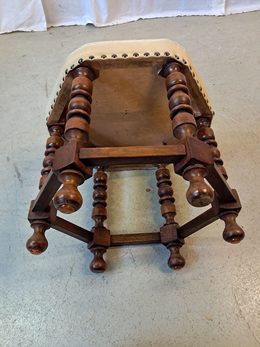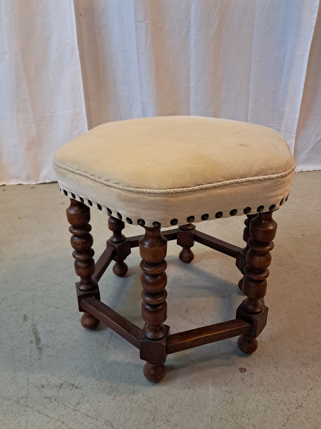 Skammel i massivt egetræ, fra 1950erne.Den har brugsspor.