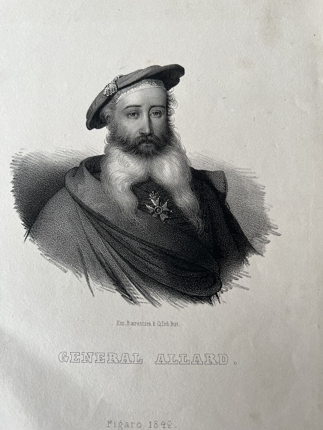 Litografi af Em. Bærentzen - Portræt af General Jean-Francois Allard.