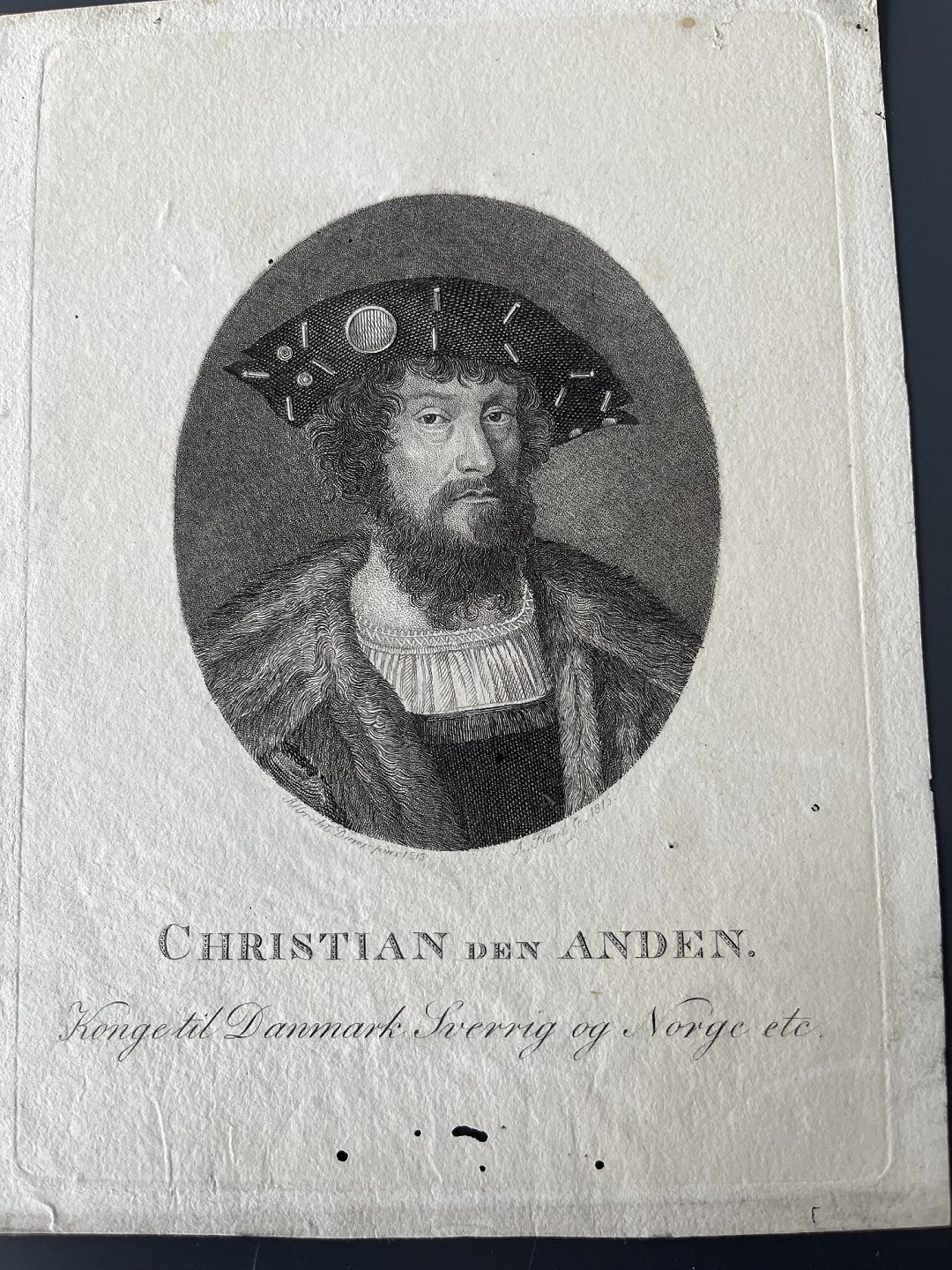 Kobberstik af Andreas Flint - Portræt af HM Kong Christian II af Danmark, Sverige og Norge.