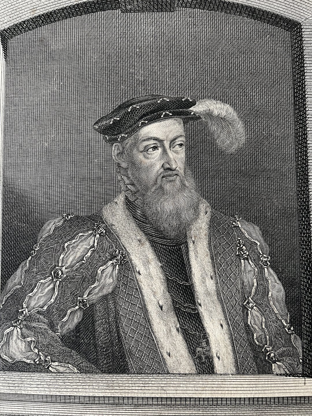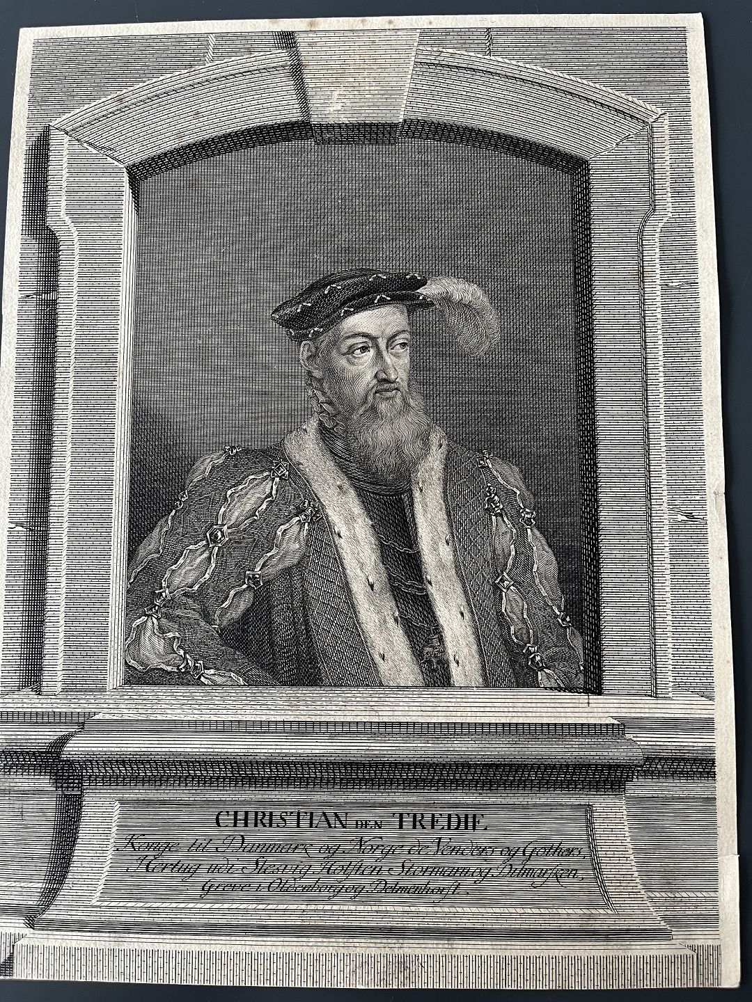 Kobberstik af Johan Martin Preisler - Portræt af HM Kong Christian III af Danmark og Norge.