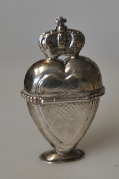 Lorenz Peter Helt (1783 - 1855) Thisted, Denmark: Heart-shaped main water egg with crown. On a stand. With decorative engravings. Stamped on the edge of the egg. 13 sløding. Height.: 7 cm.Item number: 28876