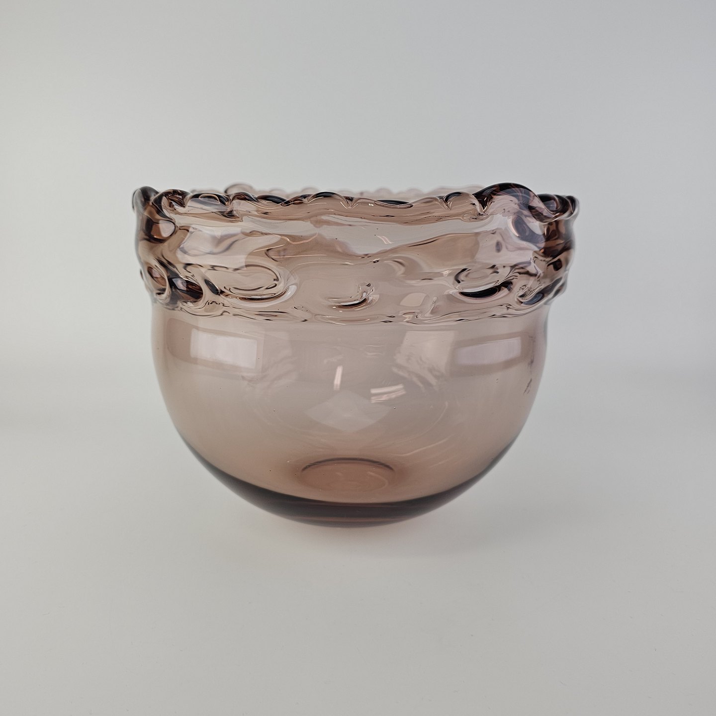 Skål i rosafarvet glas med bølget kant fra serien RosamundFormgiver Christer Holmgren
