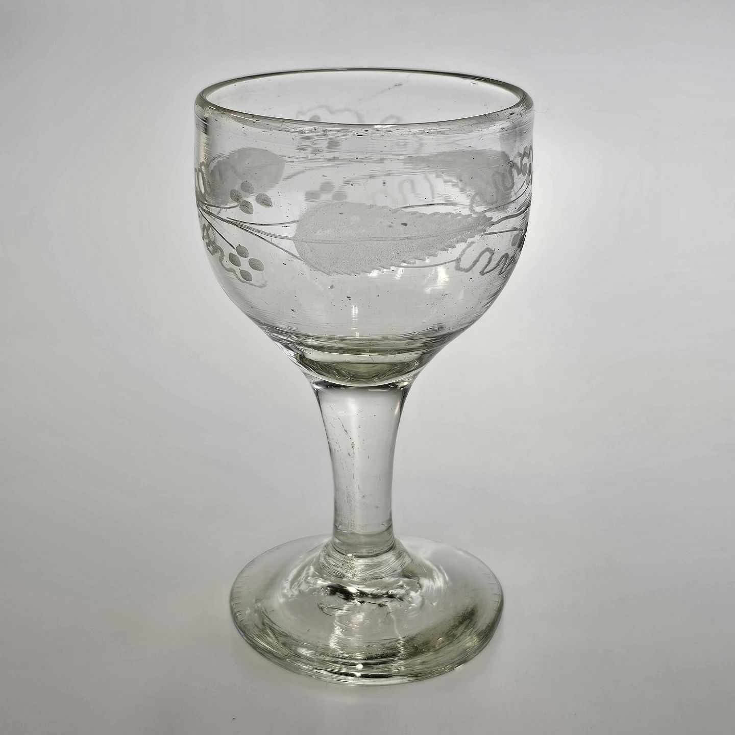 Håndblæst vinglas med spidsbladet løvslibning Producent ukendt
