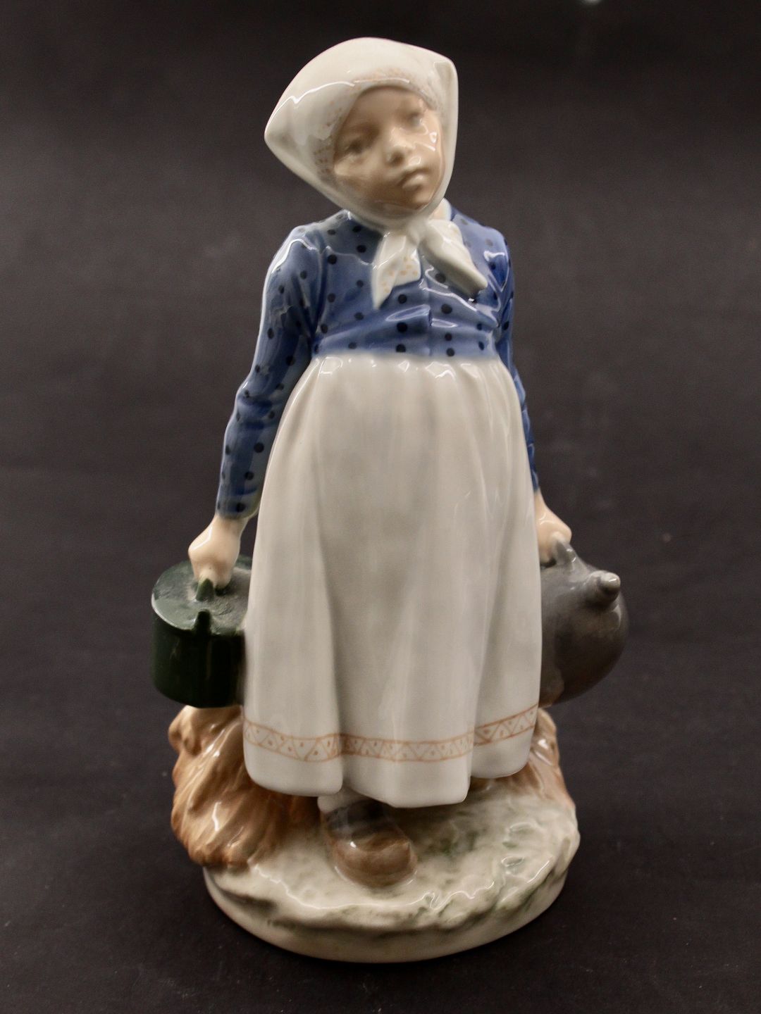 Royal Copenhagen, Farm Girl 815 with lunch, jug and pan. Designed by Christian Thomsen. H. 21.5 cm. item no. 631518 Dealer