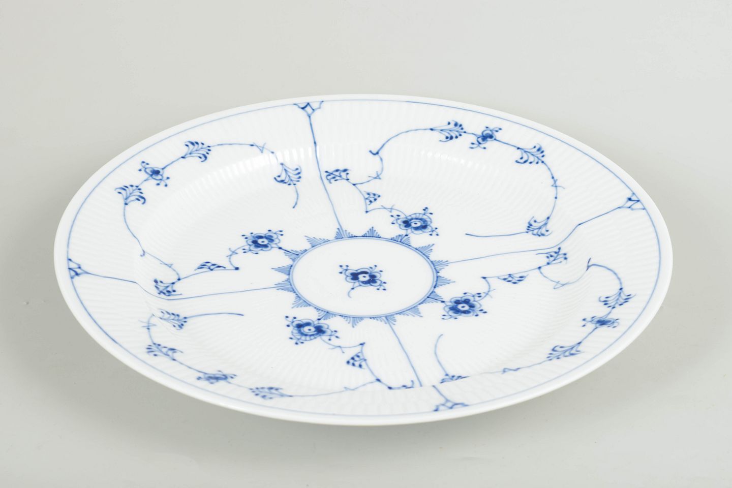 Royal Copenhagen, Blue Fluted Plain serving platter.Round porcelain serving platter decorated in underglaze blue with the classic Blue Fluted Plain pattern. Model 1/107.