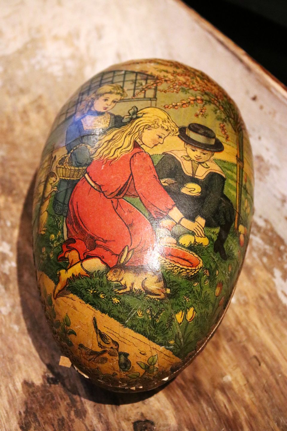 Vintage Easter egg in papier-mâché from the early 1900s with a motif,