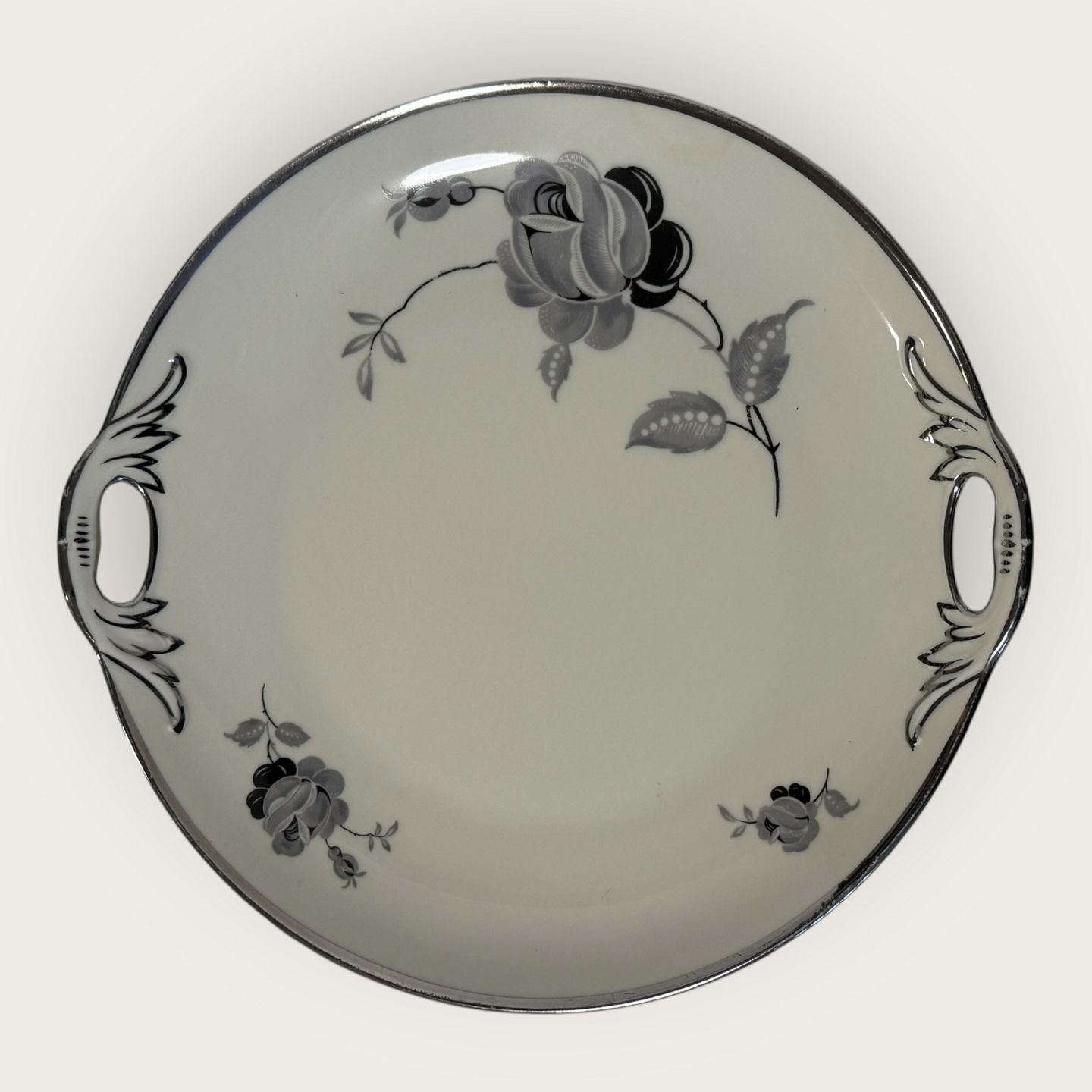 Black rose, with Plantin edge, KPM, Lyngby, Cake dish with handle, Dimensions: 24.5x25.5cm *Good condition*Stock: 1