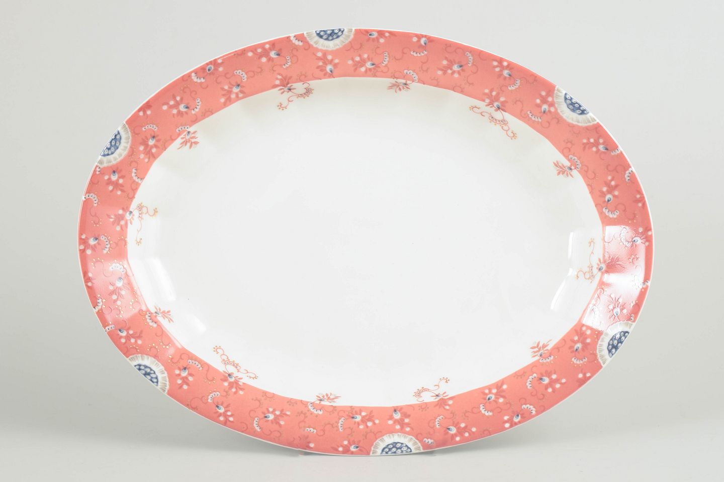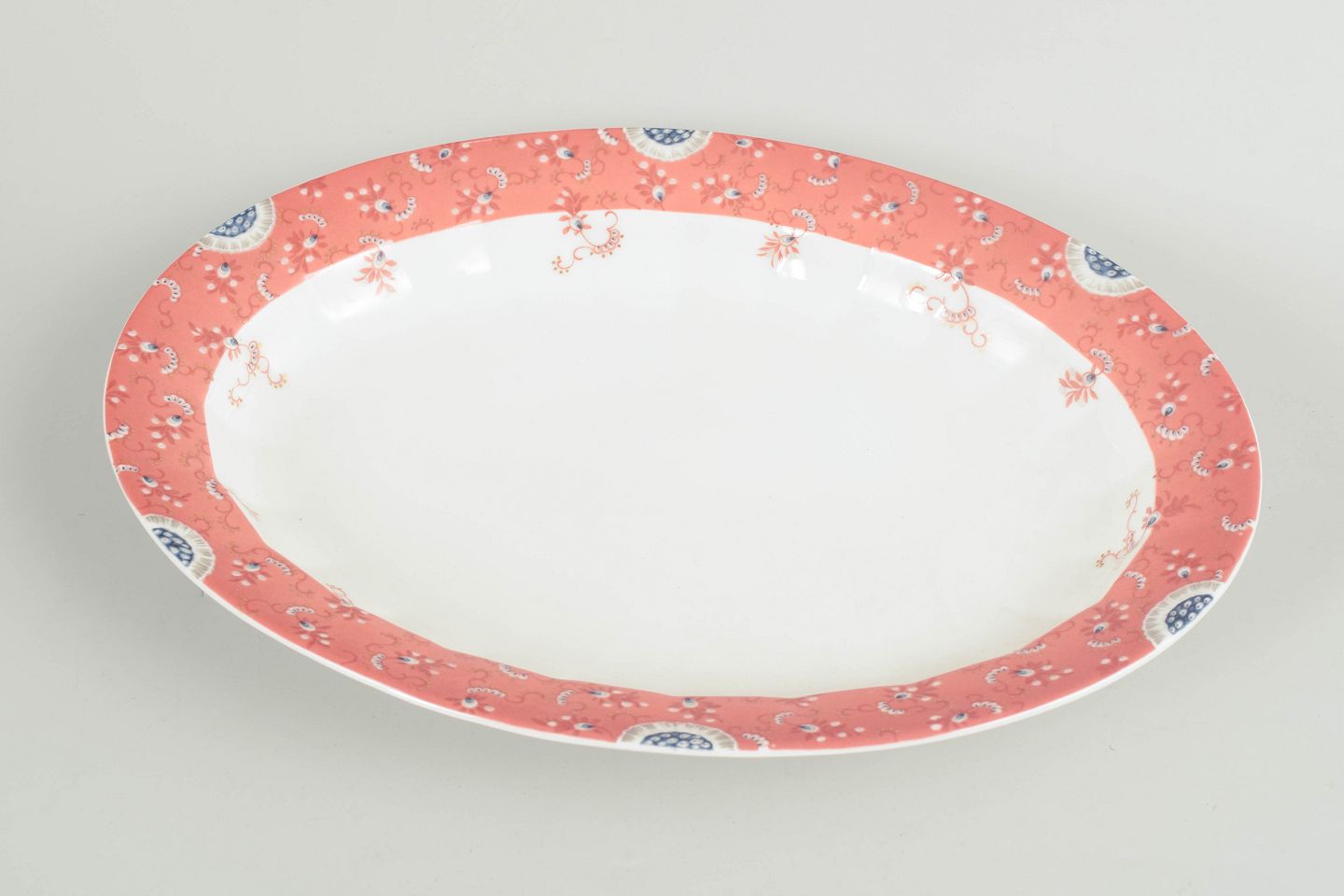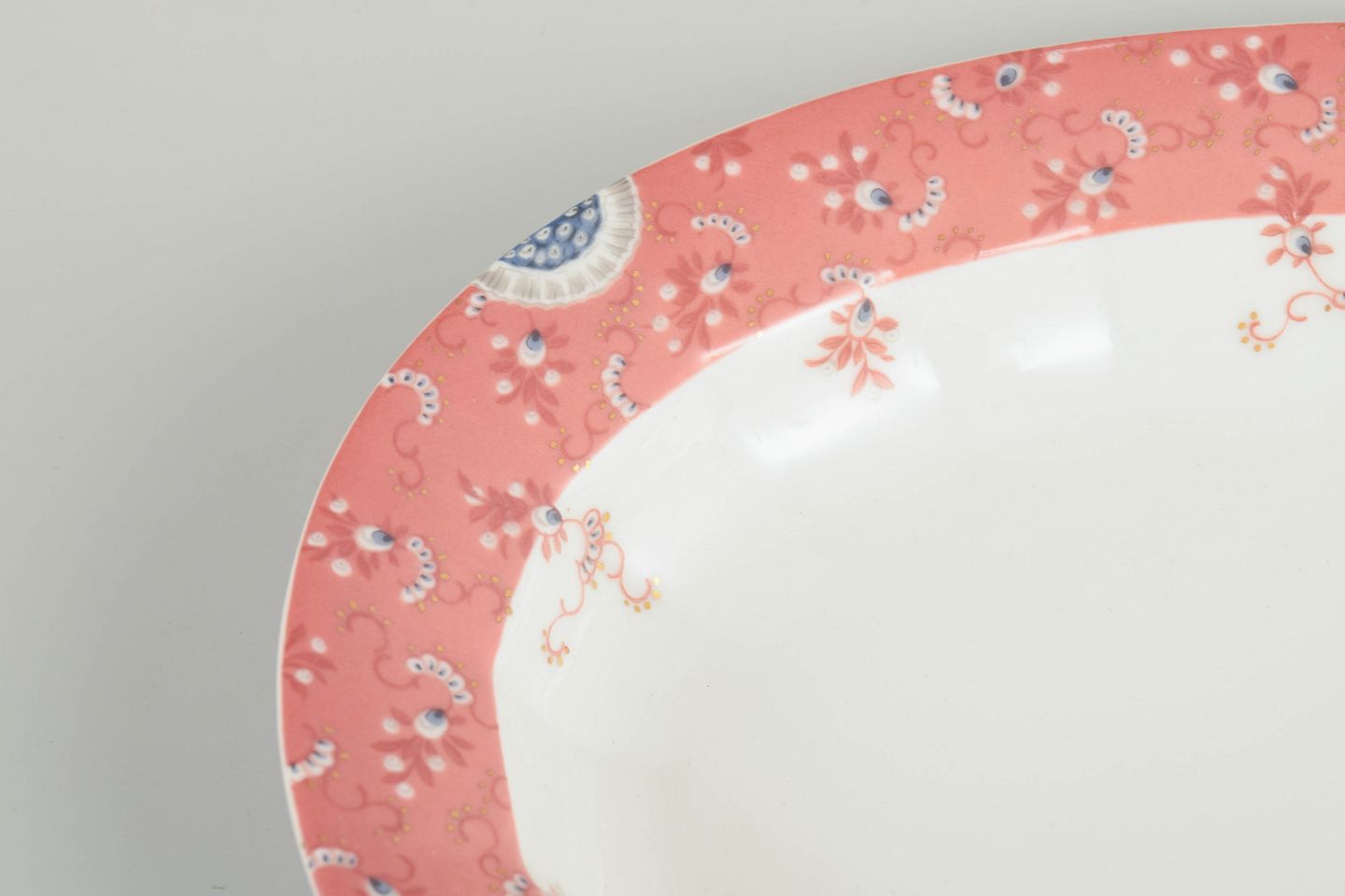 Royal Copenhagen, Fairytale large dish.Large oval dish in white porcelain decorated with the Fairytale pattern along the rim in soft pink tones with delicate ornamental detailing. The dish was produced between 1992 and 1999 and is of first factory quality. Model 374.