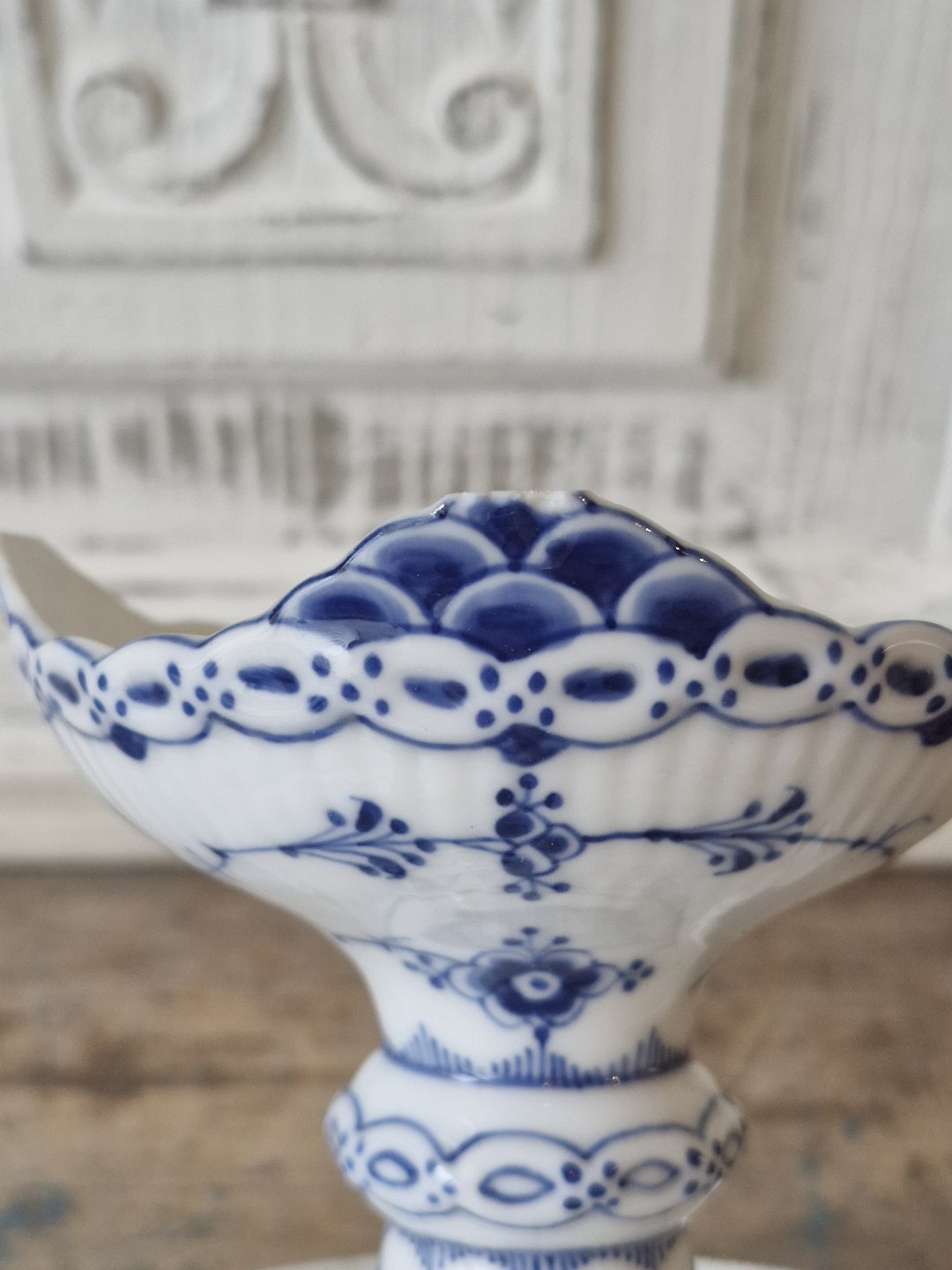 Royal Copenhagen Blue Fluted half-lace dish with wavy edgeNo. 710, Factory first