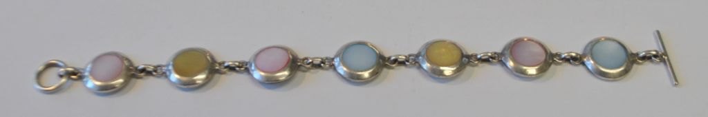 Bracelet in sterling silver with mother-of-pearl, 20th century. Stamped. L.: 18.5 cm.Item number: 28922