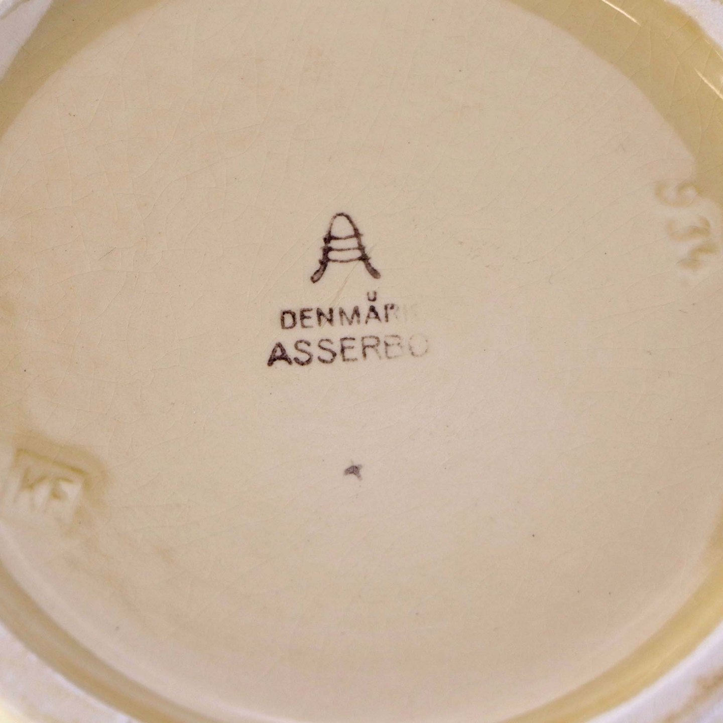 Fremstår med bruneringer under glasuren og krakkeleringer i glasuren.